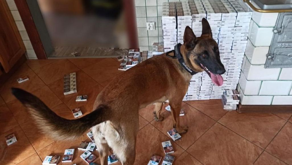 Funkcjonariusze Służby Celno-Skarbowej z podlaskiej KAS zabezpieczyli niemal 6,5 tys. paczek papierosów bez polskich znaków akcyzy. Mieszkaniec Hajnówki, u którego mundurowi znaleźli nielegalny towar, usłyszał zarzuty z kodeksu karnego skarbowego. W wykryciu kontrabandy pomógł specjalnie wyszkolony pies.Funkcjonariusze Służby Celno-Skarbowej z Bobrownik ustalili, że 63-letni mieszkaniec Hajnówki może przechowywać u siebie nielegalne papierosy. Podczas przeszukania domu mężczyzny mundurowi znaleźli 6365 paczek papierosów pochodzących z przemytu. Kontrabanda była ukryta m.in. w kotłowni oraz w skrytkach w schodach i w ścianie między pokojami. W przeszukaniach funkcjonariuszy wspierała Hiena, owczarek belgijski wyszkolony do wykrywania wyrobów tytoniowych.