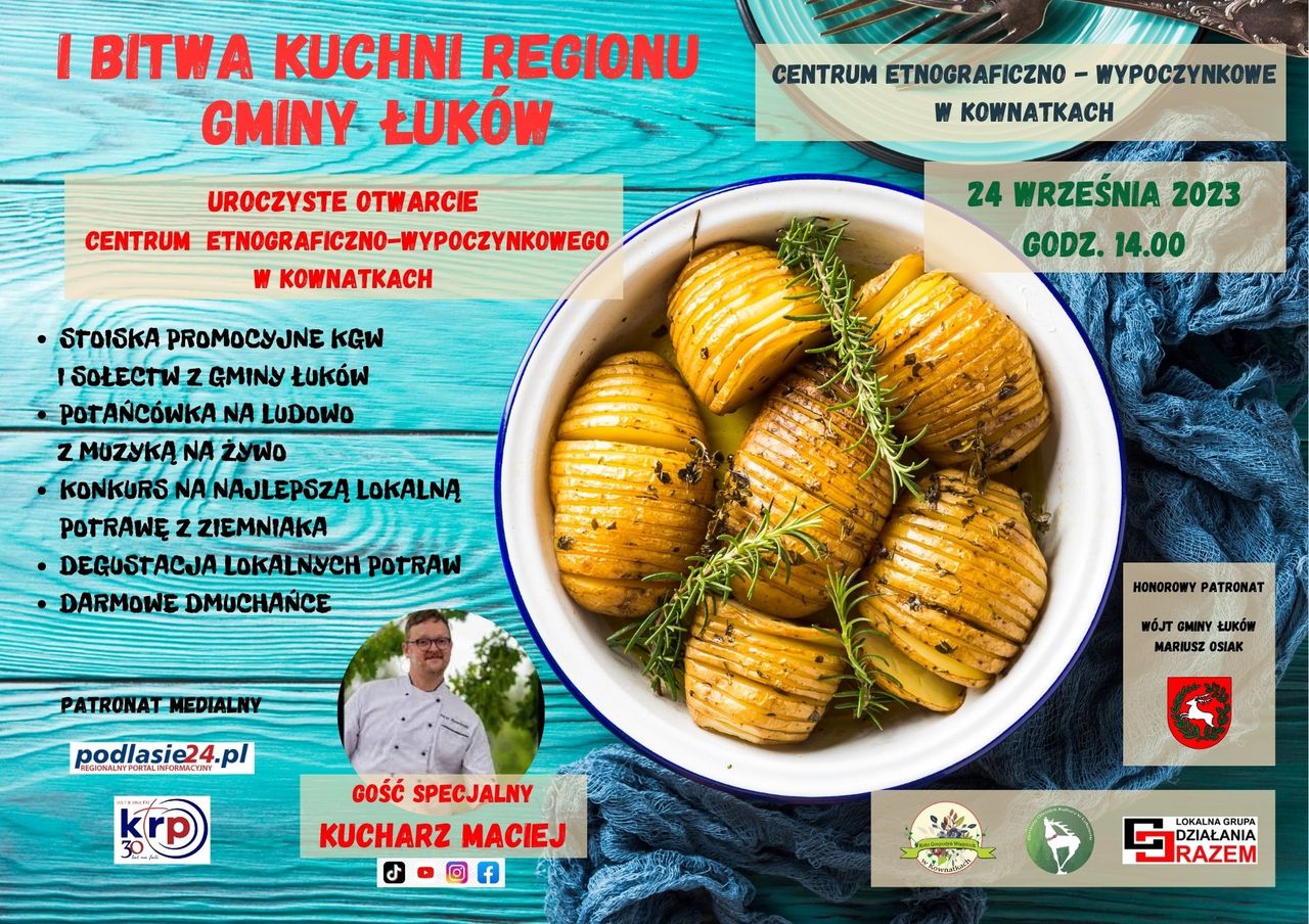 Przed nami I Bitwa Kuchni Regionu. Odbędzie się ona w Kownatkach w gminie Łuków. W gotowaniu „zmierzą” się m.in. panie z kół gospodyń wiejskich. Bitwę poprowadzi znany z sieci Kucharz Maciej. Zgłoszenia od osób, które chcą brać udział w zabawie przyjmowane są do 15 września.