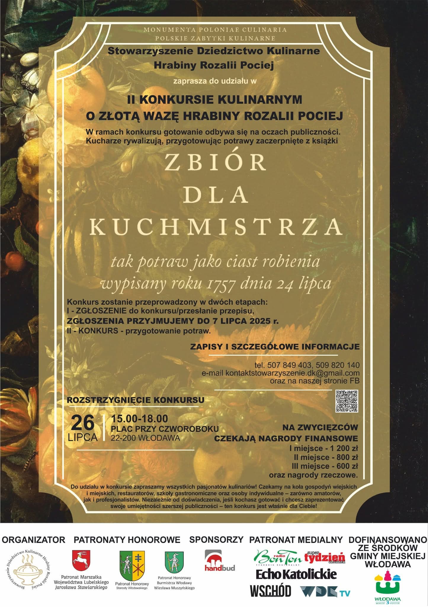 II Konkurs Kulinarny o Złotą Wazę Hrabiny Rozalii Pociej odbędzie się 26 lipca na placu przy Czworoboku we Włodawie. Organizatorem jest Stowarzyszenie Dziedzictwo Kulinarne Hrabiny Rozalii Pociej, promujące lokalne tradycje kulinarne oraz dziedzictwo kulturowe regionu. Zgłoszenia do konkursu będą przyjmowane do 7 lipca.