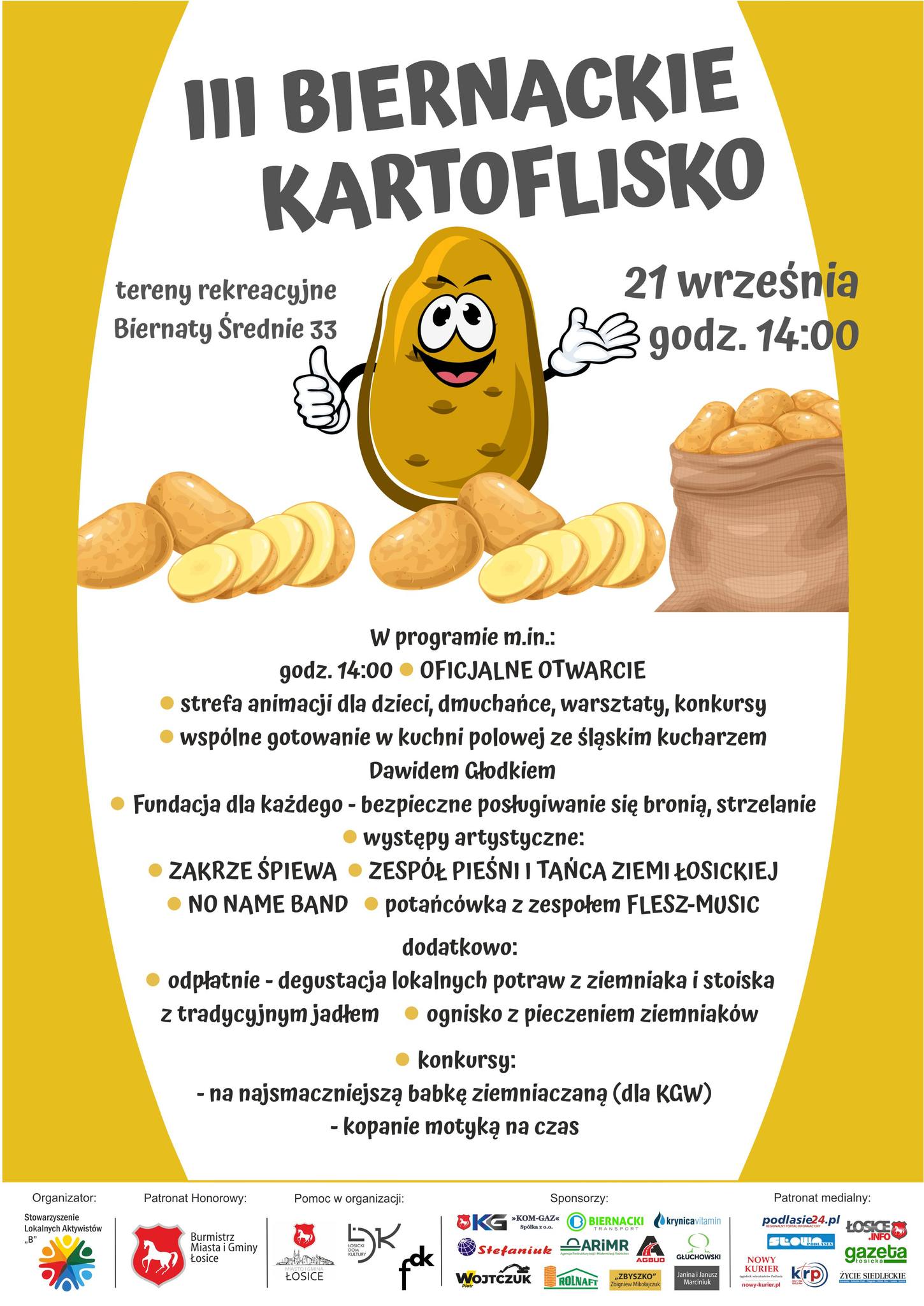 Pod hasłem „Biernackie Kartoflisko” w Biernatach Średnich k. Łosic już po raz trzeci odbędzie się w niedzielę, 21 września, impreza plenerowa poświęcona popularyzacji ziemniaków. Na uczestników czeka wiele atrakcji – zarówno dla dzieci, jak i dorosłych.