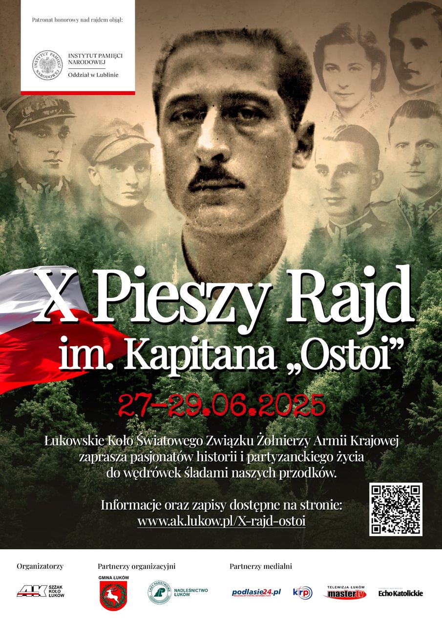 Już po raz dziesiąty łukowskie Koło Światowego Związku Żołnierzy Armii Krajowej organizuje dla pasjonatów historii i partyzanckiego życia Pieszy Rajd im. Kapitana Ostoi. Odbędzie się on w ostatni weekend czerwca. Patronują mu Katolickie Radio Podlasie oraz portal Podlasie24.