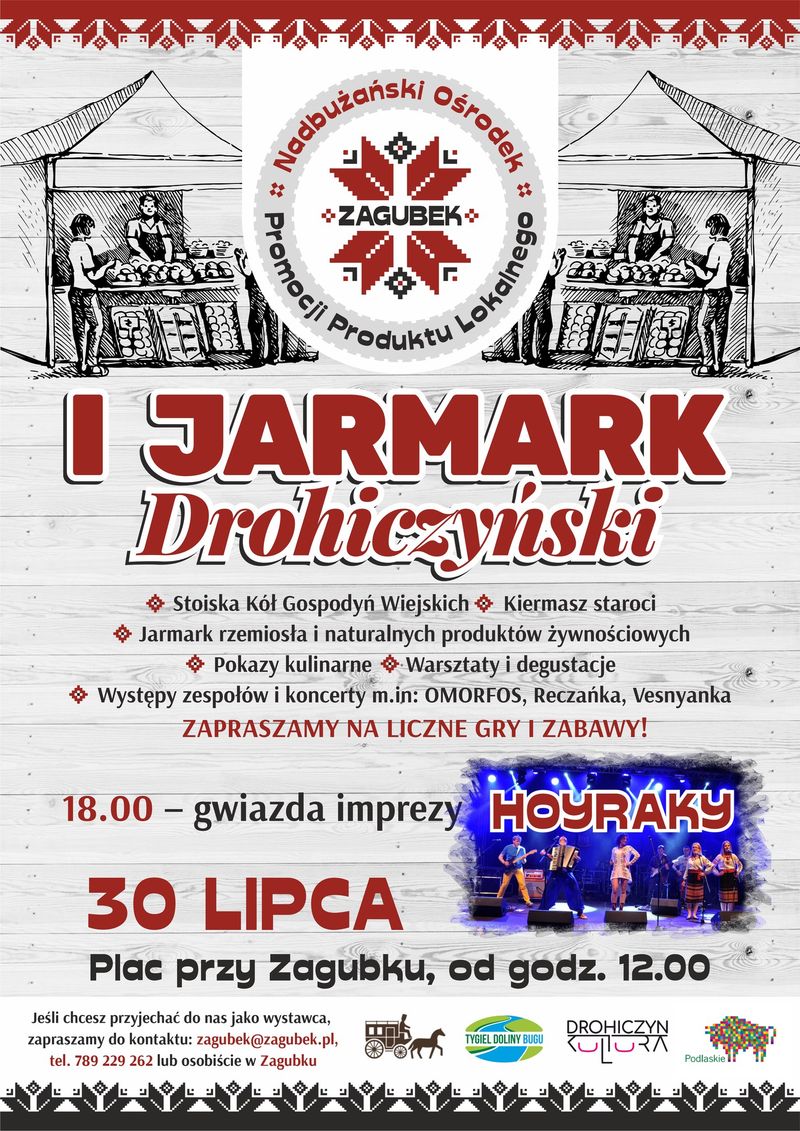 Na Drohiczyńskim Jarmarku nie zabraknie też muzyki na żywo. Zaplanowano występy zespołów i koncerty, wystąpią między innymi: Omorfos, Reczańka i Vesnyanka. O godz. 18.00 pojawi się gwiazda imprezy HOYRAKY.