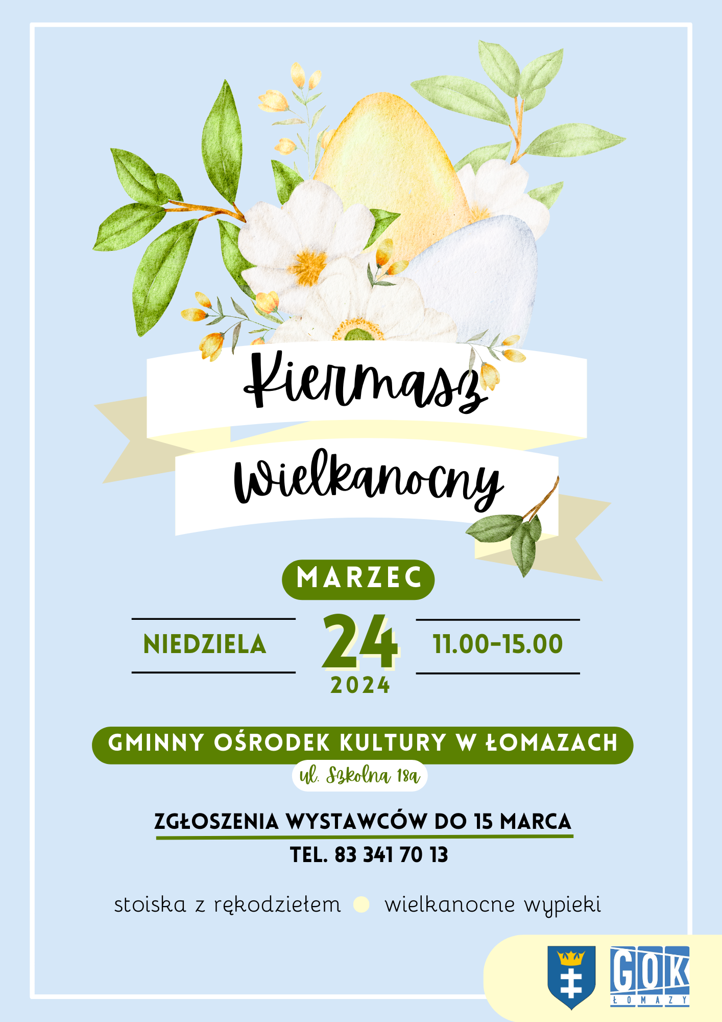 24 marca w Gminnym Ośrodku Kultury w Łomazach odbędzie się Kiermasz Wielkanocny.