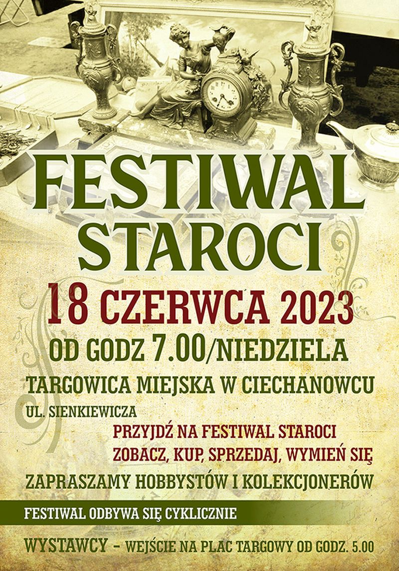W niedzielę, 18 czerwca na Targowisku Miejskim w Ciechanowcu odbędzie się kolejny Festiwal Staroci - wydarzenie adresowane do wszystkich hobbystów, kolekcjonerów, pasjonatów staroci i przedmiotów z duszą.