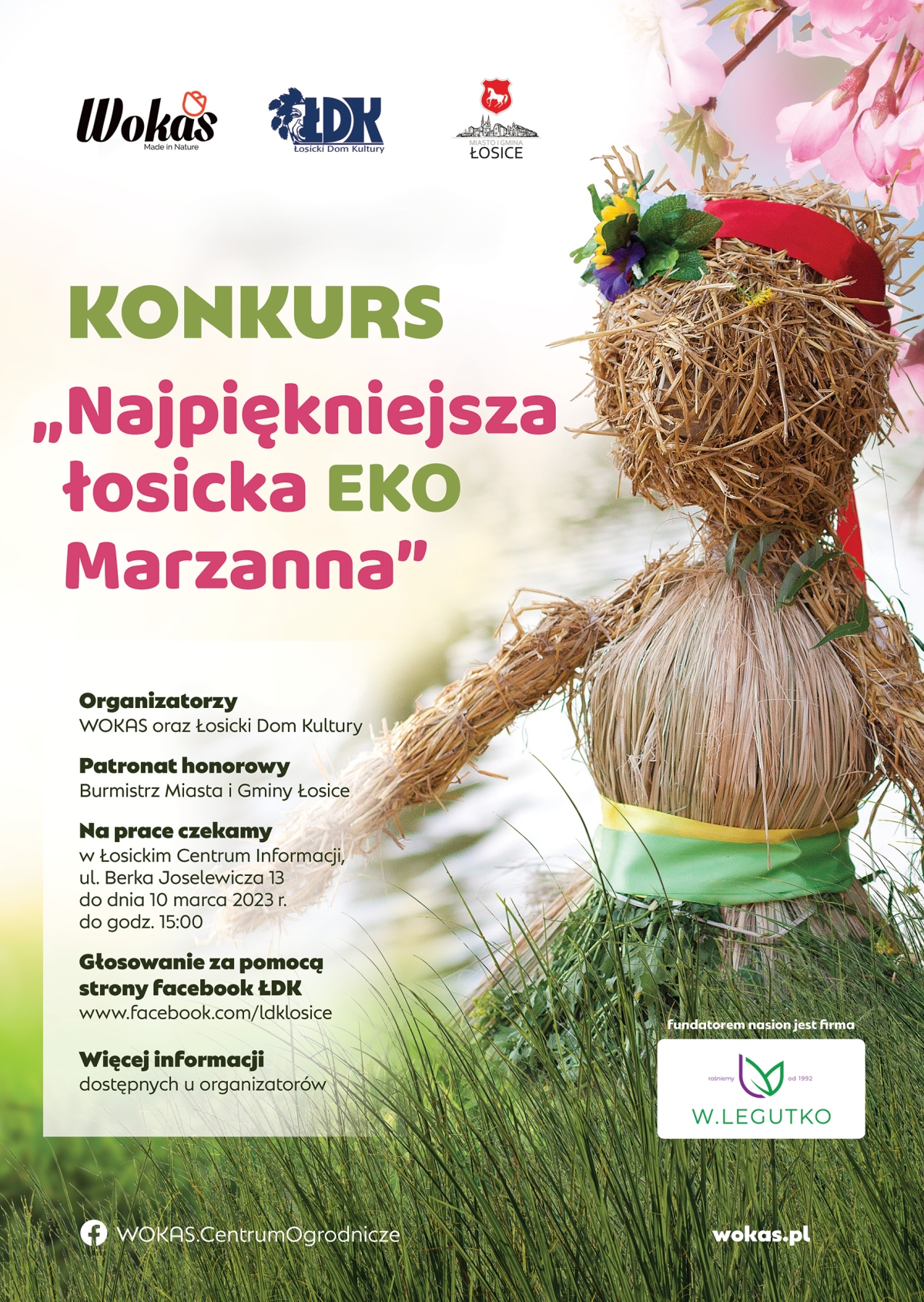 Łosicki Dom Kultury zaprasza Placówki Przedszkolne oraz Szkoły Podstawowe z terenu Miasta i Gminy Łosice do wzięcia udziału w konkursie „Przywitaj wiosnę z WOKAS-em" na wykonanie EKO Marzanny.