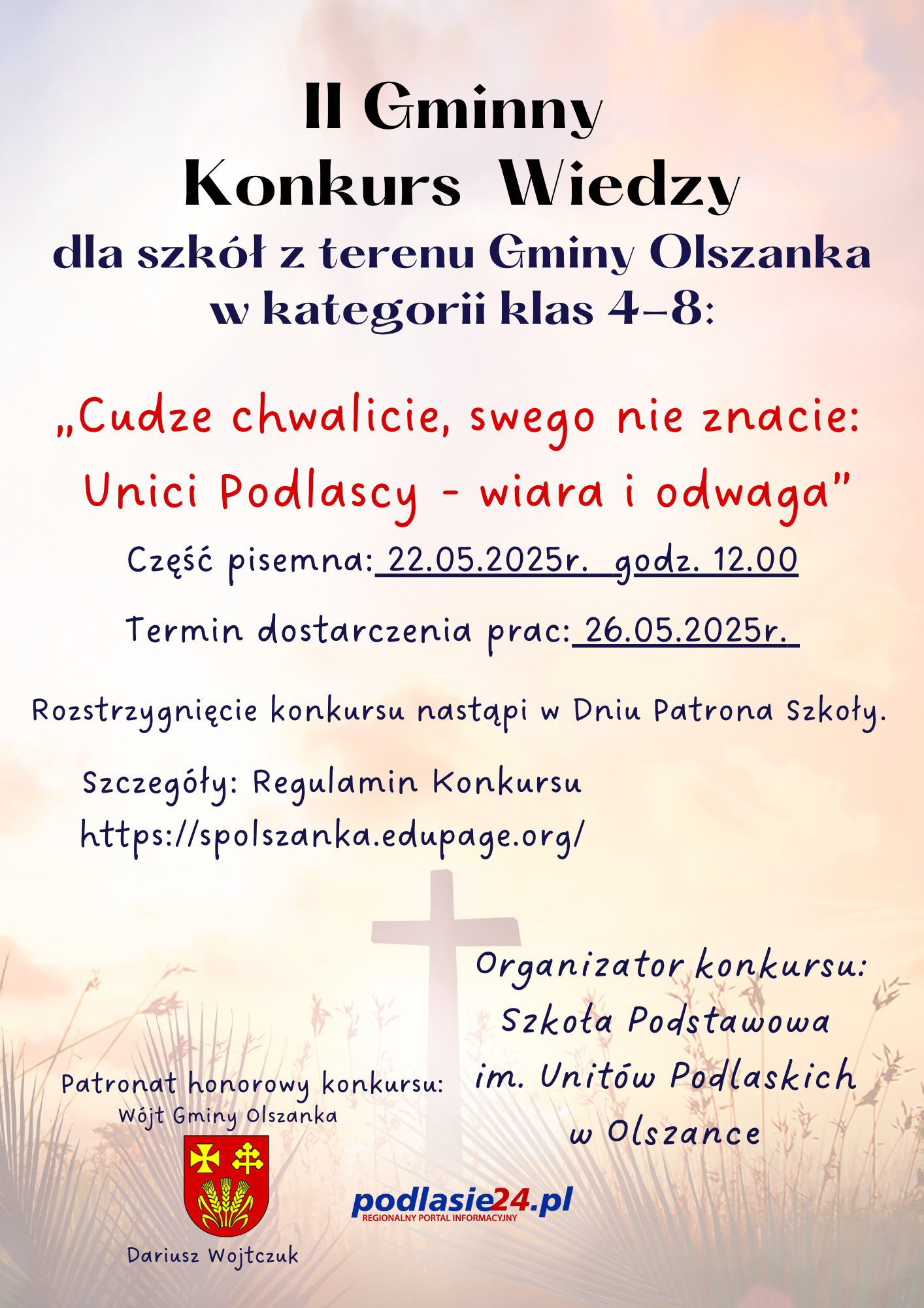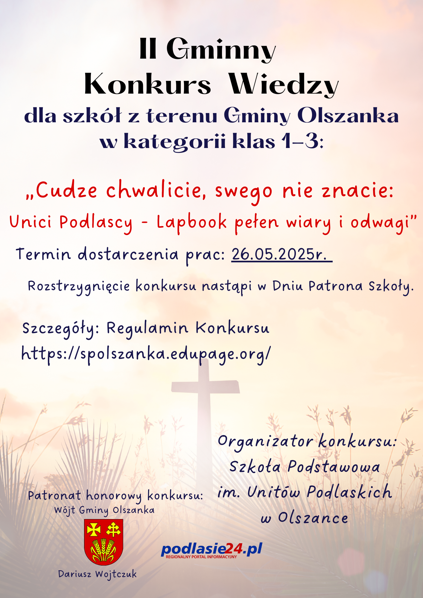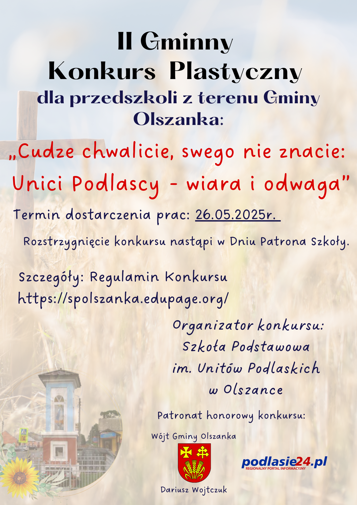 W Gminie Olszanka ruszyła druga edycja gminnego konkursu pod hasłem „Cudze chwalicie, swego nie znacie: Unici Podlascy – wiara i odwaga”. Jego celem jest upowszechnianie wiedzy o Unitach Podlaskich – ważnym symbolu lokalnej historii, wiary i niezłomności.
