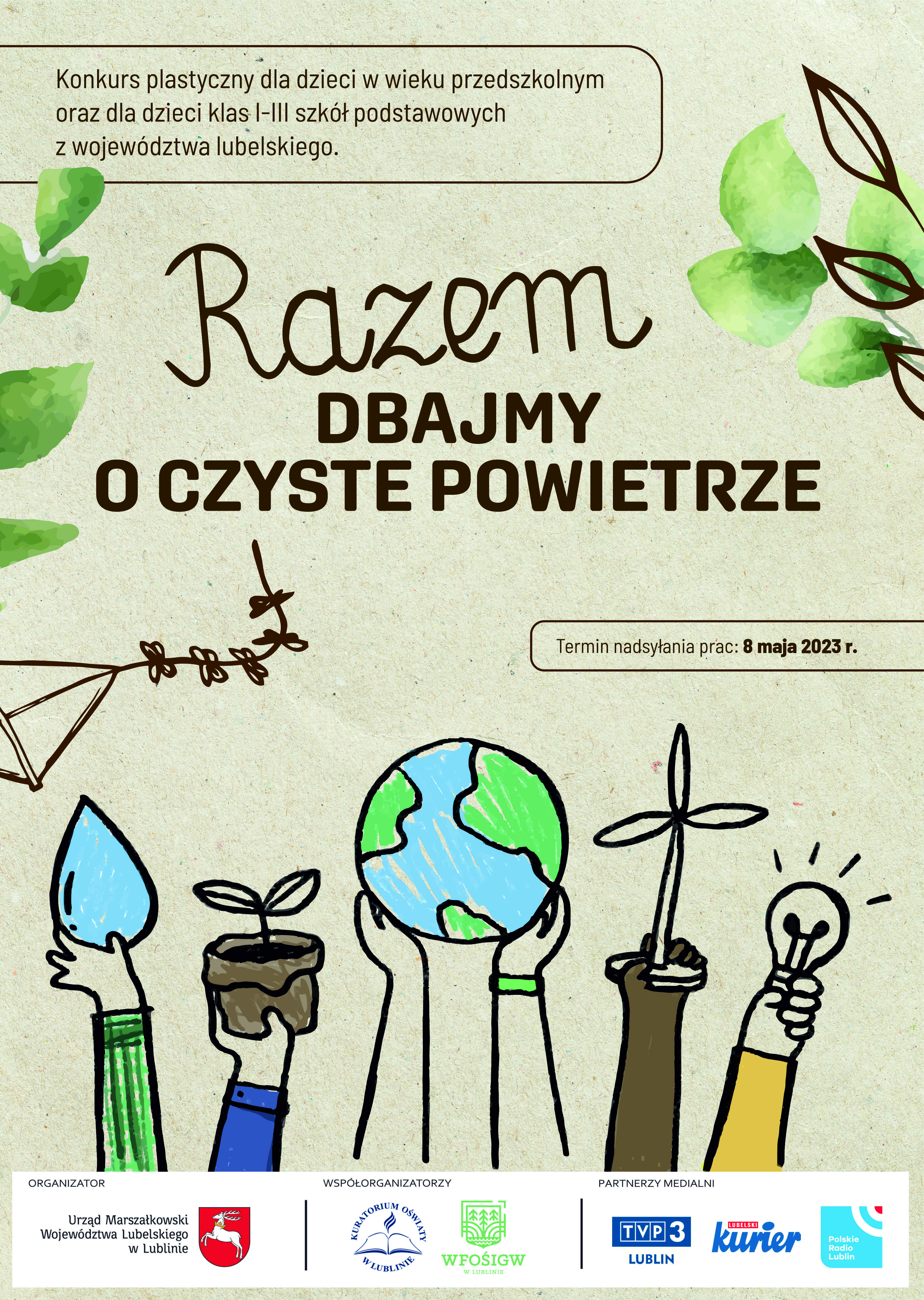 Departament Środowiska i Zasobów Naturalnych UMWL ogłasza konkurs plastyczny „Razem dbajmy o czyste powietrze”, który jest skierowany do najmłodszych mieszkańców województwa lubelskiego. Termin składania zgłoszeń upływa 8 maja.