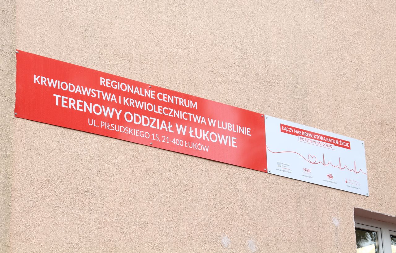 Łukowski Terenowy Oddział Regionalnego Centrum Krwiodawstwa i Krwiolecznictwa rozpoczął pracę w nowym lokalu. Znajduje się on w budynku Poczty Polskiej, przy ulicy Piłsudskiego 15. Krwiodawcy po latach lokalowych problemów, mają teraz swoje nowe miejsce, a pracownicy oddziału nowoczesne miejsce do pracy.