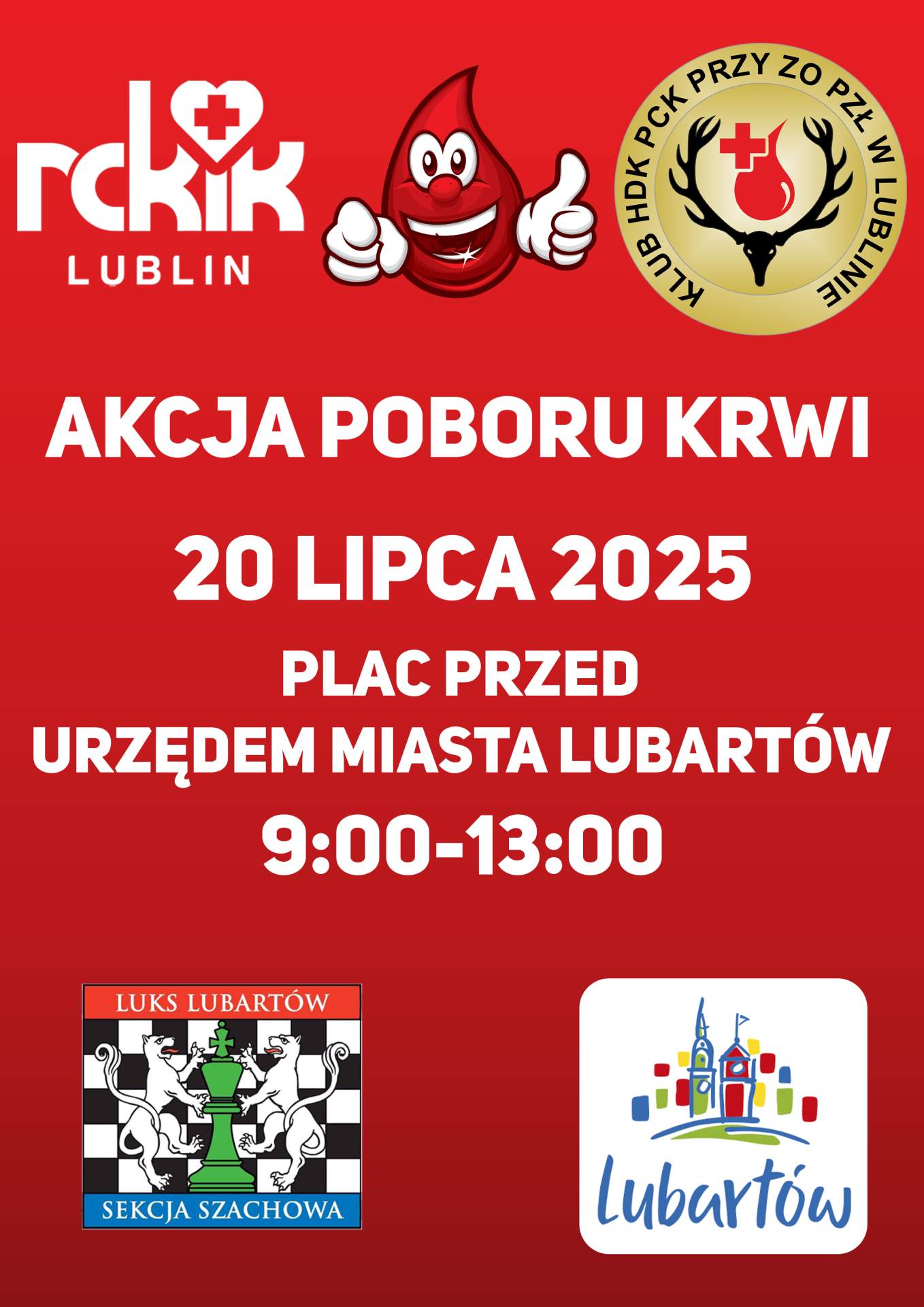 Klub Honorowych Dawców Krwi PCK przy Zarządzie Okręgowym Polskiego Związku Łowieckiego w Lublinie, we współpracy z Regionalnym Centrum Krwiodawstwa i Krwiolecznictwa w Lublinie, zaprasza na akcję poboru krwi. Wydarzenie odbędzie się 20 lipca na placu przy Urzędzie Miasta w Lubartowie.