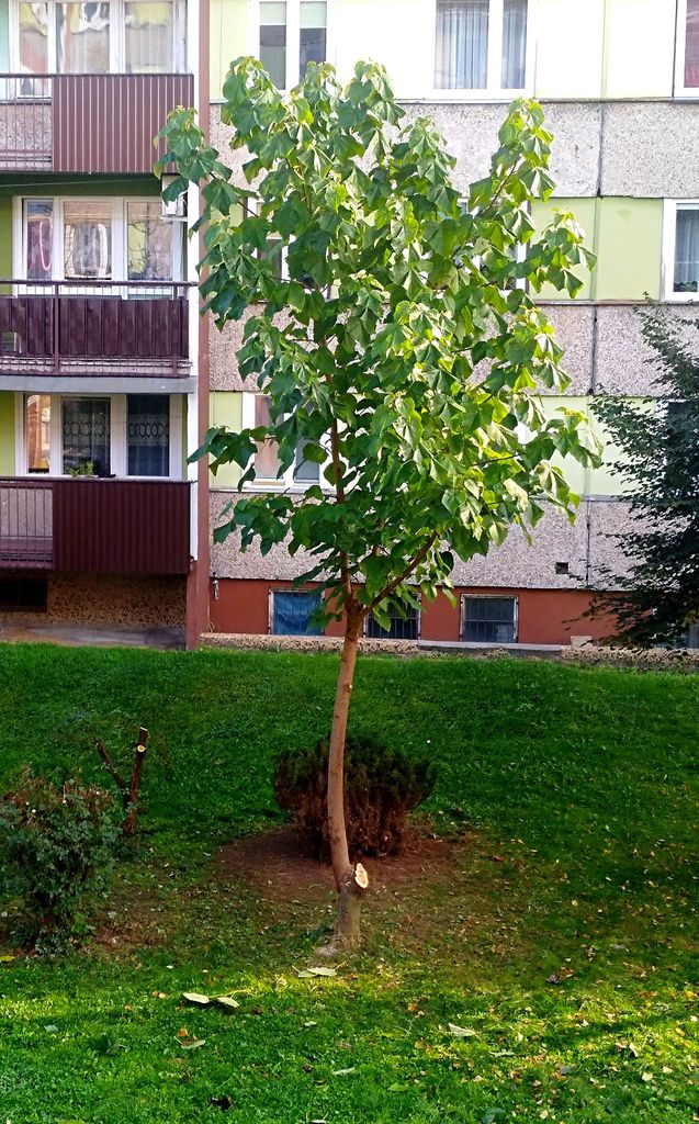 Cesarskie drzewko szczęścia - Paulownia zaczęło się ratować wypuszczając dwa odrosty sięgające już do ponad 1,5 m. Właśnie wtedy osoba wroga przyrodzie po zaopatrzeniu się w narzędzia tnące odcięła odrosty, a rosnący obok świerk obsypała solą. Oczywiście, jak przystało na profesjonalne podejście do zaplanowanej roboty odcięte odrosty posprzątała nie zostawiając żadnego listka na miejscu „zbrodni”. W sobotę rano, kto wcześniej widział i wiedział o tych odrostach mógł stwierdzić o nieludzkim czynie na bezbronnym drzewku. Łza się może zakręcić nad osobą, która w ten sposób postępuje i mieszka wśród nas. Może potrzebuje pomocy? Jakiej? Nie wiem. Cóż, jeżeli policja nie odnajdzie tego osobnika możemy się domyślać o dalszych szaleńczych nieobliczalnych czynach, a drzewa będą powoli zamierać w zależności od rozsypanej soli. Cesarskie drzewko dalej walczy, chce żyć i wypuszcza odrosty, które zostały właśnie opalikowane aby ochronić od ewentualnej dewastacji.