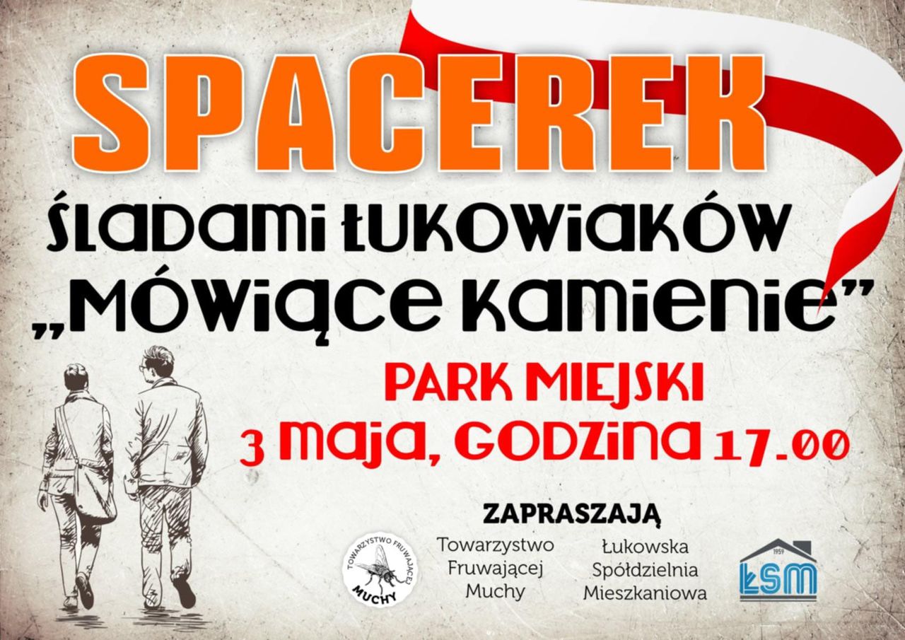 „Mówiące Kamienie” znajdują się w łukowskim parku. Ustawiane są tam od wielu lat i upamiętniają mieszkańców Łukowa oraz ważne wydarzenia. Inicjatorem ich ustawiania w parku jest Andrzej Zdrojewski. I ten znany łukowski społecznik, wspólnie z Towarzystwem Fruwającej Muchy oraz Łukowską Spółdzielnią Mieszkaniową, zapraszają 3 maja, w dniu Święta Konstytucji, na spacer szlakiem „Mówiących Kamieni”.Początek „Spacerku szlakiem Mówiących Kamieni” godzina 17.00.