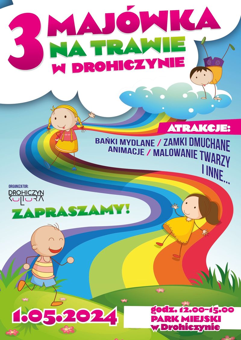 Majowe wydarzenia w Drohiczynie rozpoczną się już 1 maja „Majówką na Trawie”. Od godziny 12.00 do 15.00 atrakcje dla dzieci i rodzin czekać będą w parku miejskim.