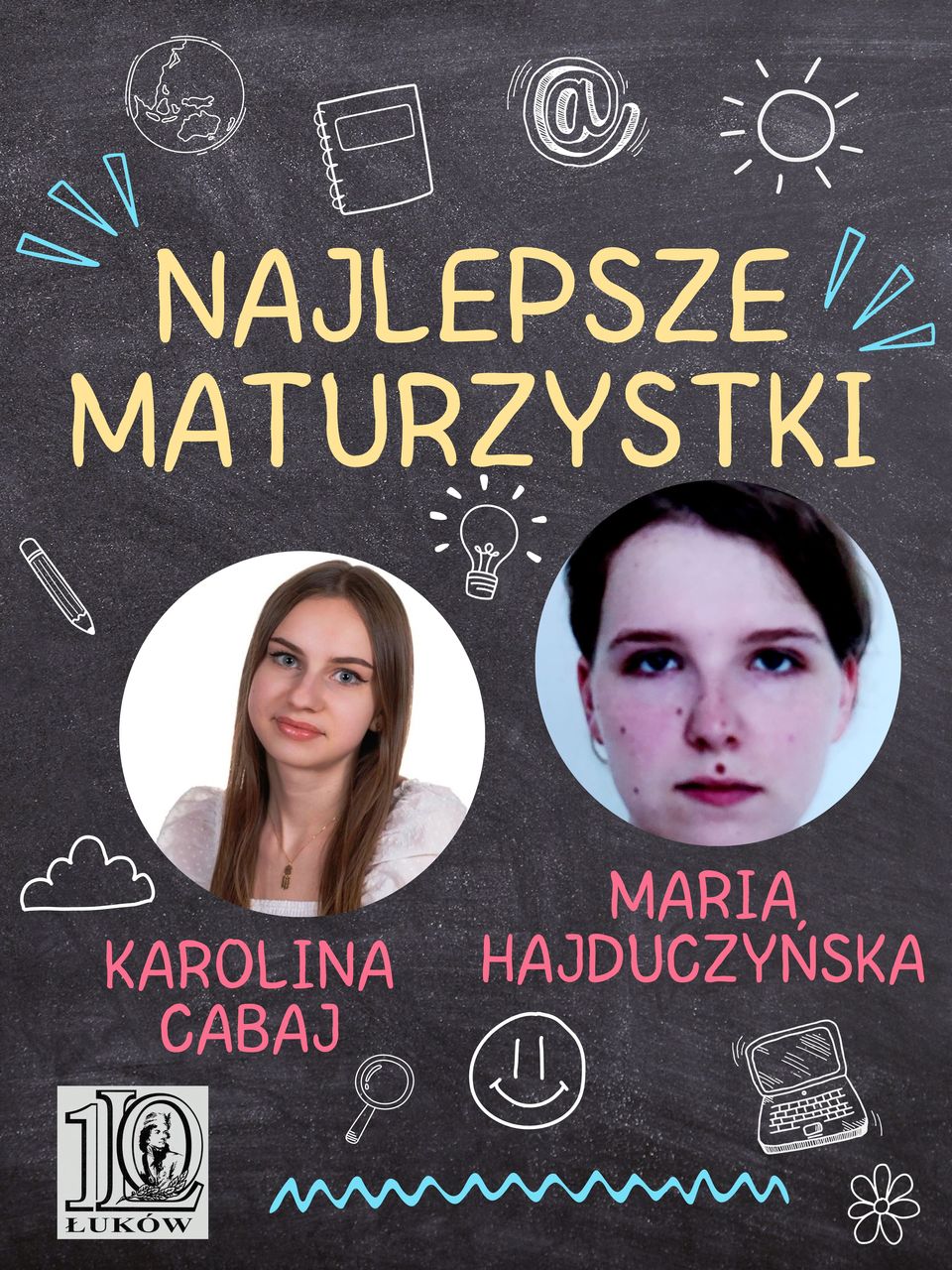 Karolina Cabaj i Maria Hajduczyńska, tegoroczne absolwentki I LO im. T. Kościuszki w Łukowie, znalazły się w gronie 290 osób, które najlepiej w kraju zdały maturę. Obie otrzymały tytuł finalistek X edycji Ogólnopolskiego Projektu „Matura na 100 procent”.