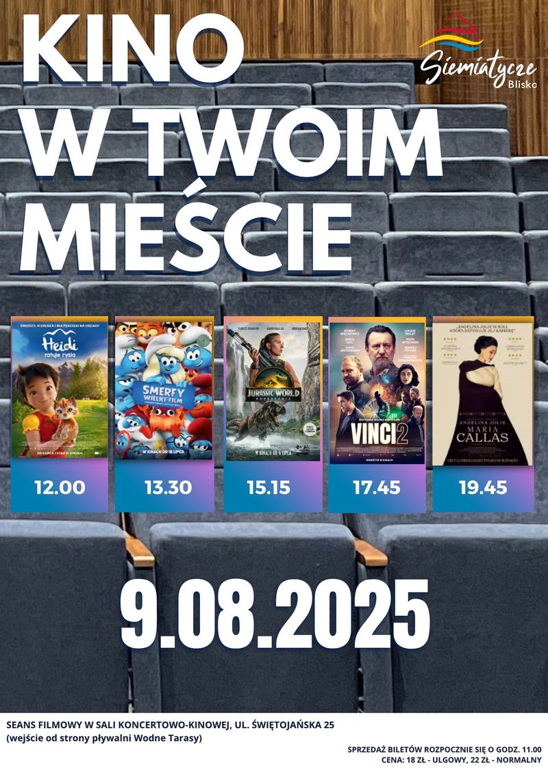 Kino w Twoim Mieście wraca do Siemiatycz. W sobotę, 9 sierpnia, w sali koncertowo-kinowej przy ul. Świętojańskiej 25 odbędzie się pięć seansów: