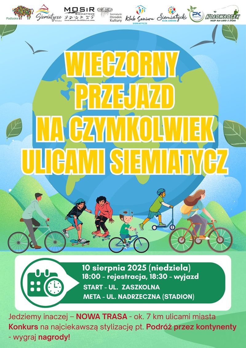W niedzielę (10 sierpnia) odbędzie się Wieczorny Przejazd na Czymkolwiek Ulicami Siemiatycz, edycja 2025. Start z ul. Zaszkolnej – zbiórka oraz odbiór identyfikatorów rozpoczną się o godz. 18:00 przy skrzyżowaniu ulic Pałacowej i Zaszkolnej, wyjazd ok. 18:30.