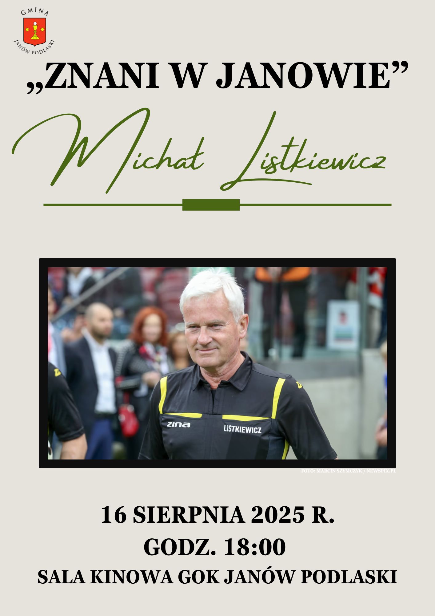 Pierwsze z wydarzeń odbędzie się w sobotę, 16 sierpnia o godzinie 18:00 w sali kinowej Gminnego Ośrodka Kultury w Janowie Podlaskim. W ramach cyklu „Znani w Janowie” Michał Listkiewicz opowie o kulisach swojej kariery sportowej i dziennikarskiej, a rozmowę poprowadzi Wójt Gminy – Karol Michałowski. Spotkanie będzie okazją do poznania nieznanych anegdot z życia polskiej piłki nożnej oraz zadania pytań jednemu z najbardziej doświadczonych arbitrów międzynarodowych.