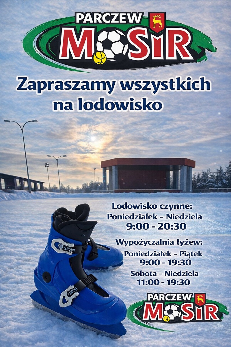 Miejski Ośrodek Sportu i Rekreacji w Parczewie zaprasza mieszkańców oraz gości do korzystania z miejskiego lodowiska. Obiekt jest czynny od poniedziałku do niedzieli, co umożliwia aktywne spędzanie czasu zarówno w tygodniu, jak i w weekendy.Lodowisko to doskonałe miejsce do rekreacji dla dzieci, młodzieży i dorosłych. Dla osób, które nie posiadają własnego sprzętu, dostępna jest wypożyczalnia łyżew, dzięki czemu każdy może spróbować swoich sił na lodzie.