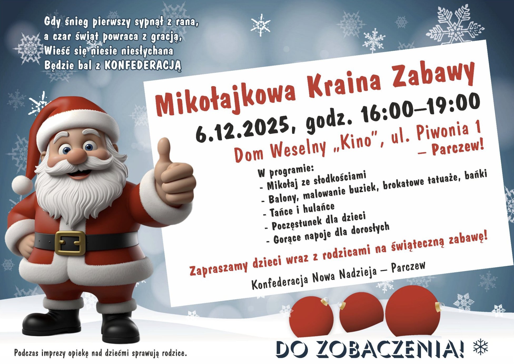Najbliższy czas w powiecie parczewskim upłynie pod znakiem Mikołajek oraz intensywnych przygotowań do nadchodzących Świąt Bożego Narodzenia. W wielu miejscowościach dzieci będą miały okazję spotkać się z Mikołajem, a młodzież i dorośli wziąć udział w imprezach kulturalnych i kiermaszu świątecznym, który z pewnością wprowadzi w atmosferę zimowych świąt.