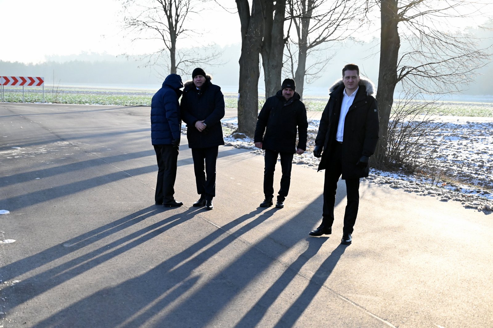10 stycznia br. Starosta Radzyński Szczepan Niebrzegowski wraz z Wicestarostą Michałem Zającem, Członkiem Zarządu Powiatu Radzyńskiego Jerzym Bednarczykiem oraz Dyrektorem Zarządu Dróg Powiatowych Mirosławem Kułakiem oceniali stan robót drogowych na przebudowywanym odcinku.