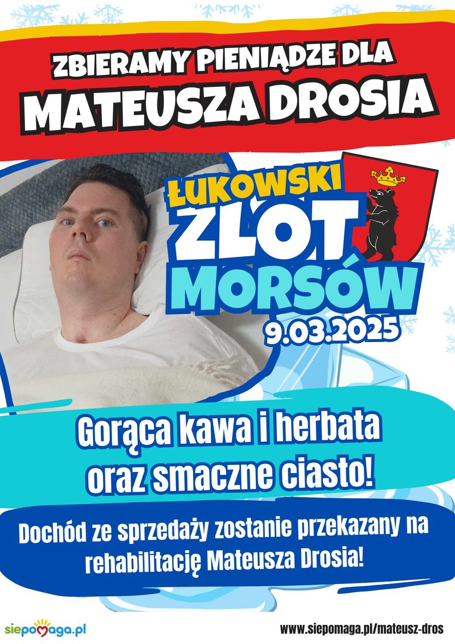 Podczas zlotu łukowskich morsów odbędzie się również zbiórka na rehabilitację Mateusza Drosia. Będzie można kupić pyszne domowe ciasta, gorącą kawę i herbatę.