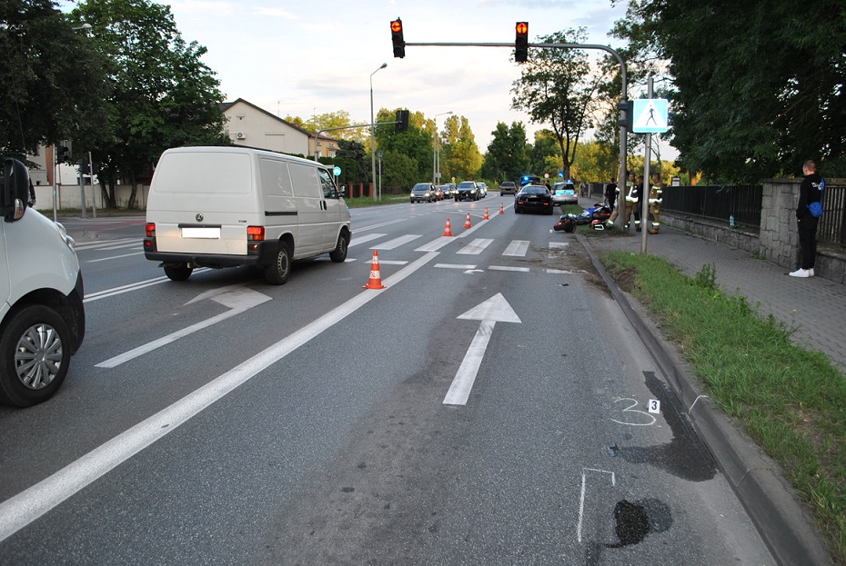 Do zdarzenia doszło przed godziną 19.00 w rejonie skrzyżowania ul. Zamkowej z ul. Narutowicza w Białej Podlaskiej. Ze wstępnych ustaleń wynika, że 27-latek kierujący samochodem marki Maserati zmieniając pas ruchu nie ustąpił pierwszeństwa znajdującemu się tam motocykliście. Po tym jednoślad przewrócił się uderzając w krawężnik i słup sygnalizacji świetlnej, a następnie uderzył w dwie nastolatki oczekujące przed przejściem dla pieszych na zmianę świateł.Motocyklem kierował 32-latek, który z obrażeniami ciała trafił do szpitala. Trafiły tam również piesze. Na szczęście ich obrażenia nie okazały się groźne i jeszcze tego samego dnia opuściły placówkę. Uczestnicy wypadku byli trzeźwi. Potwierdziło to również przeprowadzone przez mundurowych badanie.