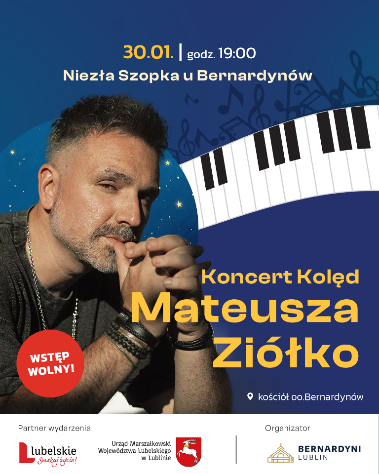 Pierwszy dzień wydarzenia, 30 stycznia, upłynie pod znakiem muzyki. W świątyni oo. Bernardynów wystąpi Mateusz Ziółko – znany polski wokalista i kompozytor, ceniony za poruszające interpretacje kolęd i pastorałek. Koncert zapowiada się jako nastrojowy wieczór refleksji i wspólnego przeżywania czasu poświątecznego, wypełniony dźwiękami znanych i lubianych utworów.