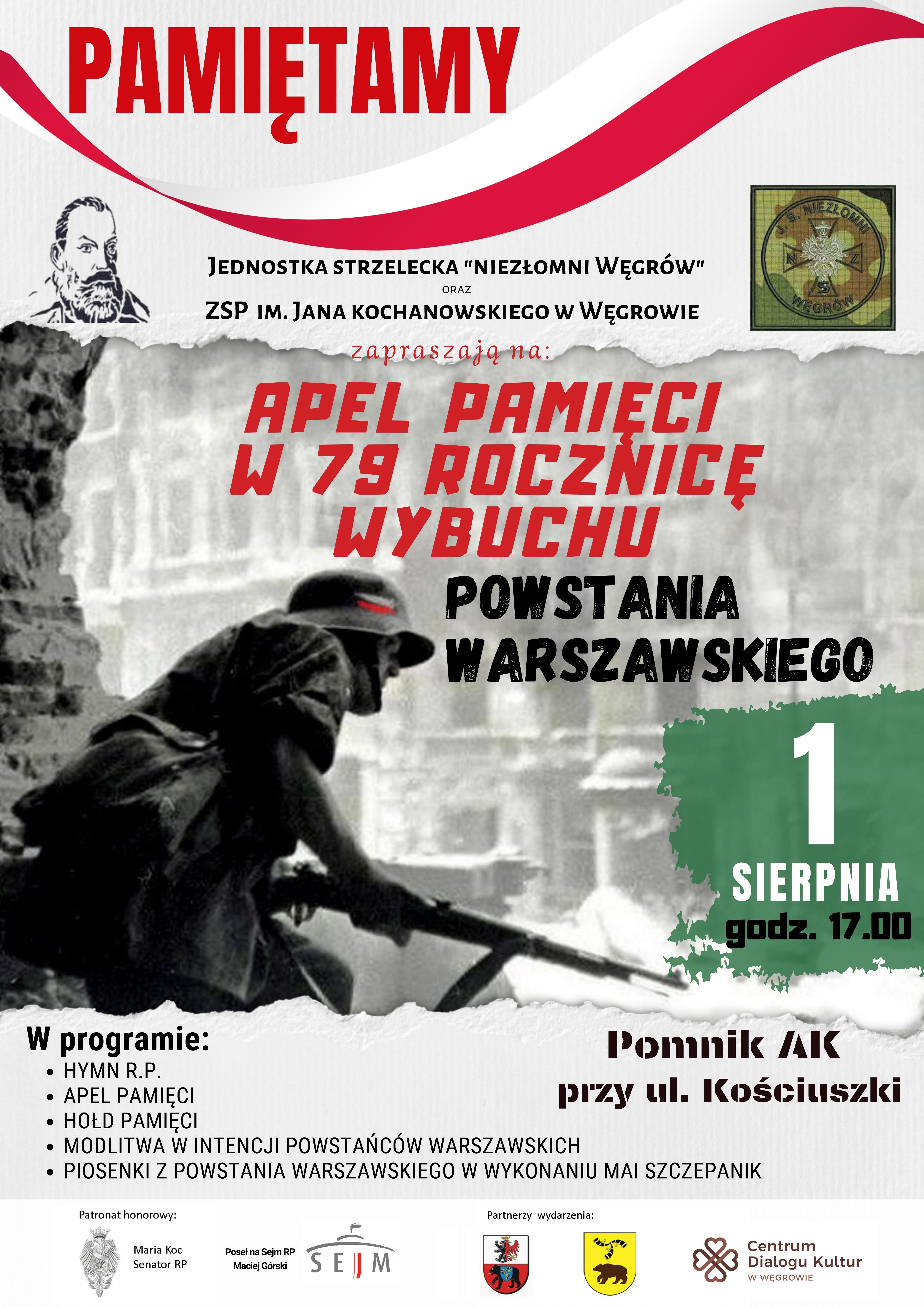 Na uroczystości zapraszają: Jednostka Strzelecka „Niezłomni Węgrów” oraz ZSP im. Jana Kochanowskiego w Węgrowie.