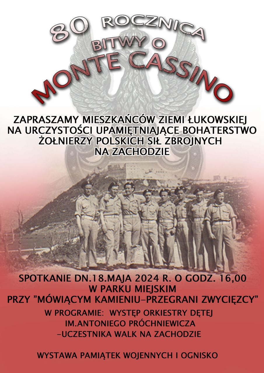 W sobotę, 18 maja w łukowskim parku przy „Mówiącym Kamieniu – Przegrani Zwycięzcy” odbędzie się spotkanie, podczas którego uczczona zostanie 80. rocznica Bitwy o Monte Cassino. Na spotkanie zaprasza Andrzej Zdrojewski.