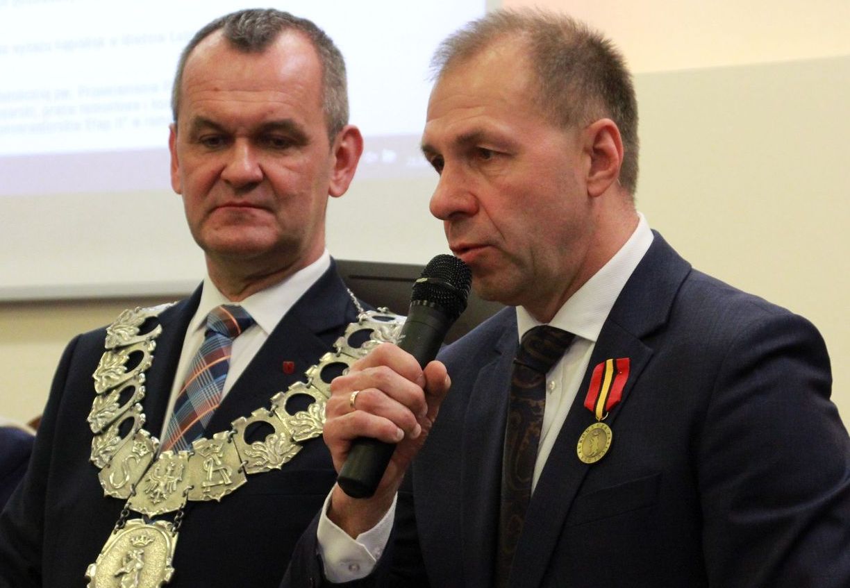 W czwartek, 21 marca odbywała się w Łukowie sesja Rady Miasta. Były to według zapowiedzi przedostatnie obrady w tej kadencji. Rozpoczęła je uroczystość wręczenia Grzegorzowi Rzymowskiemu – siatkarzowi, trenerowi, nauczycielowi wychowania fizycznego, dyrektorowi I LO im. T. Kościuszki oraz założycielowi i dyrektorowi Zespołu Pieśni i Tańca Ziemi Łukowskiej „Łukowiacy” Odznaki Honorowej za Zasługi dla Łukowa. Odznaczenie przyznano już w ubiegłym roku na wniosek radnych z Przymierza dla Ziemi Łukowskiej.Uroczyste wręczenie odznaczenia odbyło się asyście sztandaru miasta. Sylwetkę Grzegorza Rzymowskiego oraz jego działalności na rzecz Łukowa przedstawili wiceprzewodniczący Rady Miasta Urszula Chruściel i Przemysław Suchodolski. Wręczenia dokonali wspólnie burmistrz Piotr Płudowski oraz przewodniczący Rady Miasta Krzysztof Okliński.