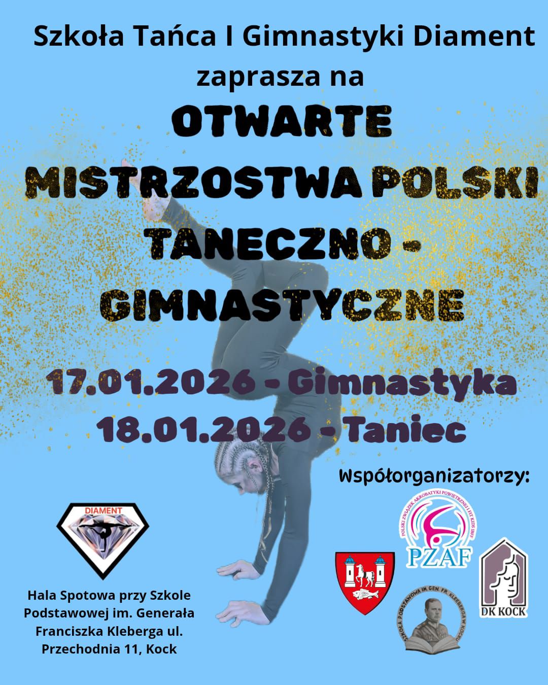 Szkoła Tańca i Gimnastyki Diament z Radzynia Podlaskiego organizuje Otwarte Mistrzostwa Polski Taneczno – Gimnastyczne. Odbędą się one w Kocku. Organizatorzy spodziewają się zawodników z całego kraju, reprezentujących różne style taneczne oraz konkurencje gimnastyczne.