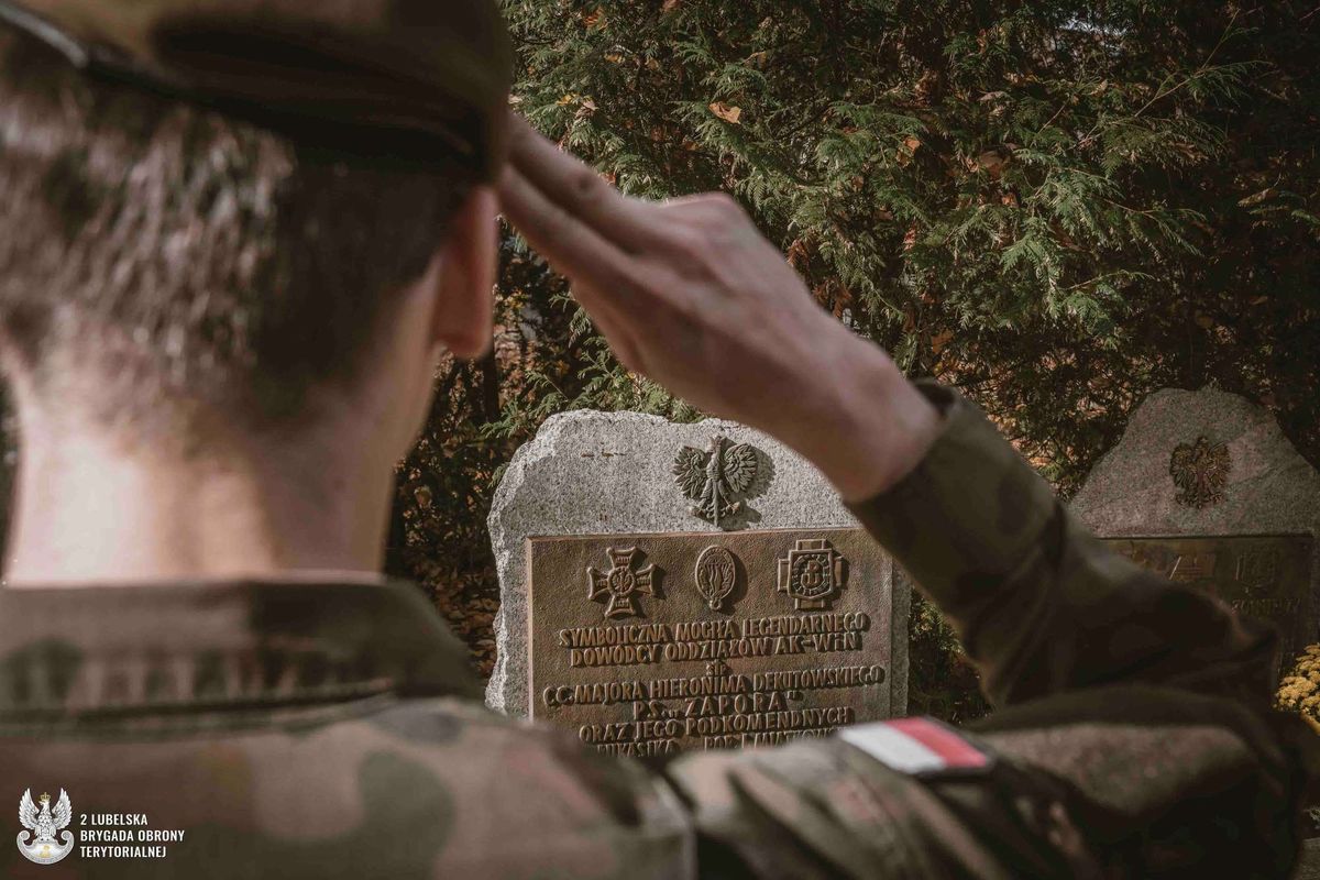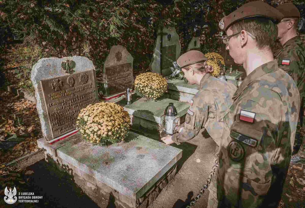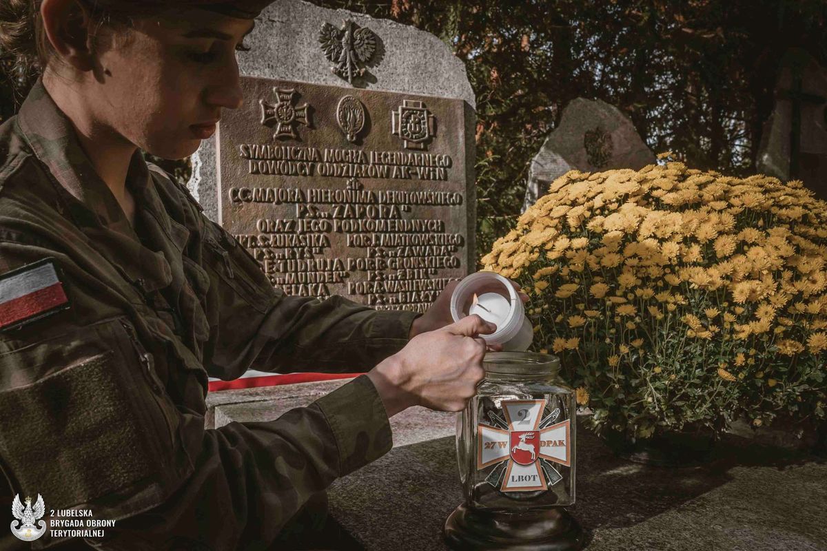 Wszystkich Świętych to wyjątkowe święto w polskiej tradycji. Dla lubelskich terytorialsów oznacza czas szczególnej pamięci o poległych bohaterach, żołnierzach Armii Krajowej i podziemia niepodległościowego po 1945 roku. Jak co roku żołnierze z batalionów lubelskiego, dęblińskiego, bialskiego, kraśnickiego i zamojskiego tuż przed świętami odwiedzili lokalne cmentarze i miejsca pamięci w swoich stałych rejonach odpowiedzialności, aby uporządkować mogiły i zapalić symboliczne znicze.W tym roku terytorialsi odwiedzili w sumie blisko 100 takich miejsc. To nie tylko cmentarze i pomniki w głównych miastach, ale również mogiły lokalnych bohaterów rozsiane w małych miejscowościach i wioskach na całej Lubelszczyźnie. Szczególnie ważne dla terytorialsów, ze względu na dziedziczone tradycje, są miejsca związane z żołnierzami Armii Krajowej i podziemia niepodległościowego po 1945 roku. Wśród nich są tacy bohaterowie, jak mjr Hieronim Dekutowski ps. „Zapora”, patron 2 Lubelskiej Brygady Obrony Terytorialnej, kpt. Zdzisław Broński ps. „Uskok”, patron 21 Lubelskiego Batalionu Lekkiej Piechoty, mjr Marian Bernaciak ps. „Orlik”, patron 22 Dęblińskiego Batalionu Lekkiej Piechoty, por. Robert Domański ps. „Florian”, patron 23 Bialskiego Batalionu Lekkiej Piechoty oraz mjr Stanisław Prus ps. „Adam”, patron 25 Zamojskiego Batalionu Lekkiej Piechoty.