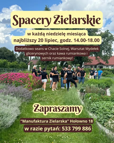 Dla tych, którzy lubią kontakt z naturą Kraina Rumianku proponuje spacer zielarski w Manufakturze Zielarskiej w Hołownie w każdą niedzielę w godzinach od 14.00 do 18.00. Natomiast miłośnicy sportu i rywalizacji mile widziani są w niedzielę, 20 lipca, nad Jeziorem Izdebno. Tam odbędzie się Charytatywny Piknik Rodzinny pn. „Kręci mnie bezpieczeństwo w lecie”, podczas którego organizatorzy zaplanowali bieg charytatywny, zawody kajakowe, jak również turniej piłki plażowej. Podczas wydarzenia zbierane będą środki finansowe na leczenie i rehabilitację Adasia Iwanejki.