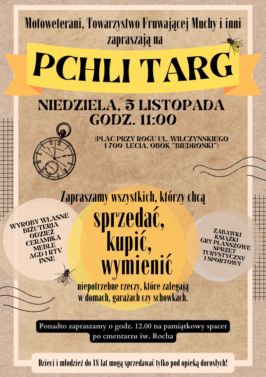 Pchli Targ w Łukowie to miejsce, gdzie będzie można kupić, sprzedać lub wymienić się przeróżnymi rzeczami. Handel odbywać się będzie na placu przy skrzyżowaniu ulic Wilczyńskiego i 700-lecia. Początek wydarzenia, na które zapraszają Towarzystwo Fruwającej Muchy. Motoweterani i inni oraz Andrzej Zdrojewski, zaplanowano na godzinę 11.00.Tego dnia organizatorzy wydarzenia zapraszają również na pamiątkowy spacer po pobliskim cmentarzu parafialnym Świętego Rocha. Spacer rozpocznie się o godzinie 12.00.