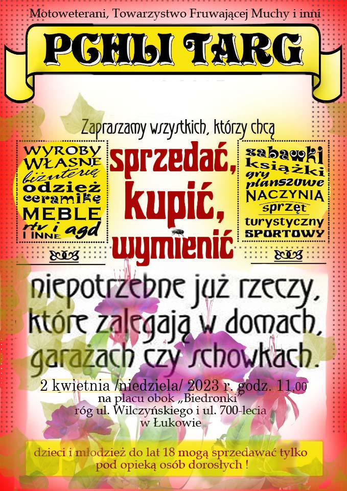 Miejscem, gdzie będzie można kupić, sprzedać lub wymienić się przeróżnymi rzeczami, będzie tradycyjnie plac przy skrzyżowaniu ulic Wilczyńskiego i 700-lecia. Początek wydarzenia, na które zapraszają Towarzystwo Fruwającej Muchy, Motoweterani i inni, a w tym również Andrzej Zdrojewski, godzina 11.00.