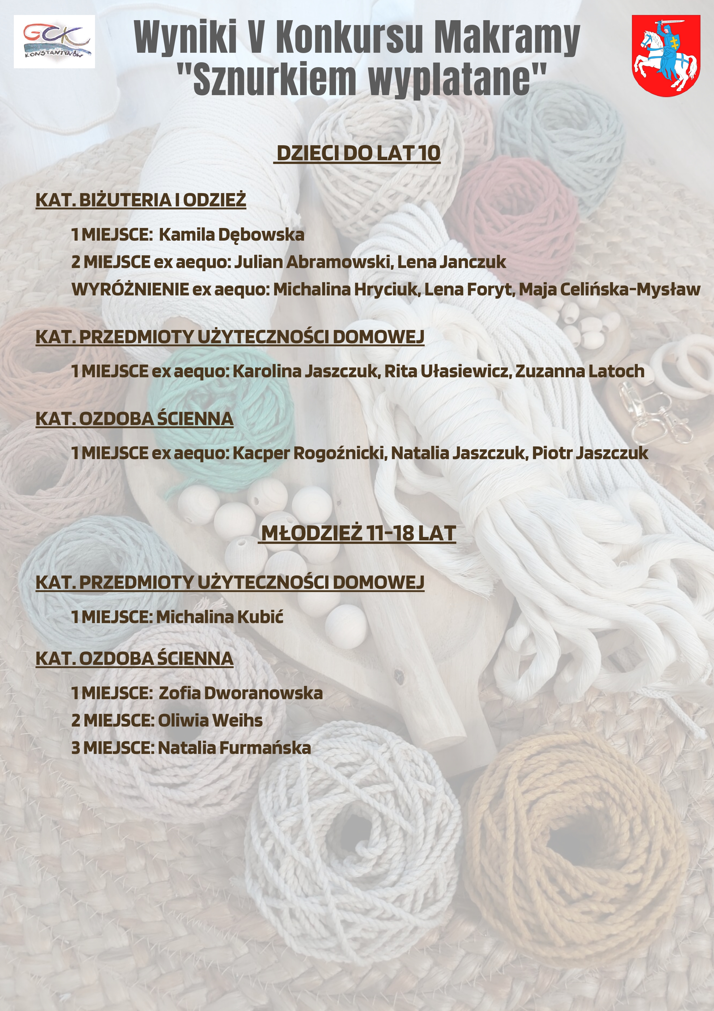 - Załoga GCK Konstantynów (Oliwia Spychel, Oliwia Pożarowszczyk) – warsztaty tkackie „Zakładka do książki”.