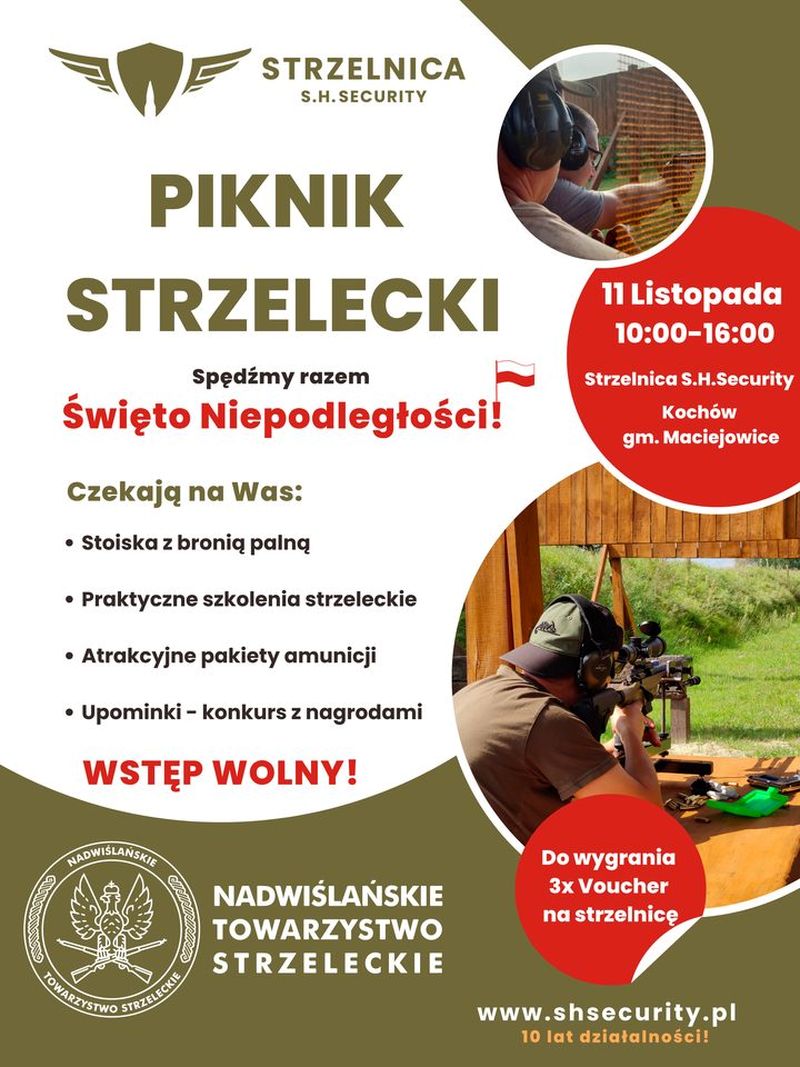 Strzelnica S.H. Security i Nadwiślańskie Towarzystwo Strzeleckie zapraszają na piknik strzelecki z okazji Święta Niepodległości, który odbędzie się 11 listopada w Kochowie w gminie Maciejowice.