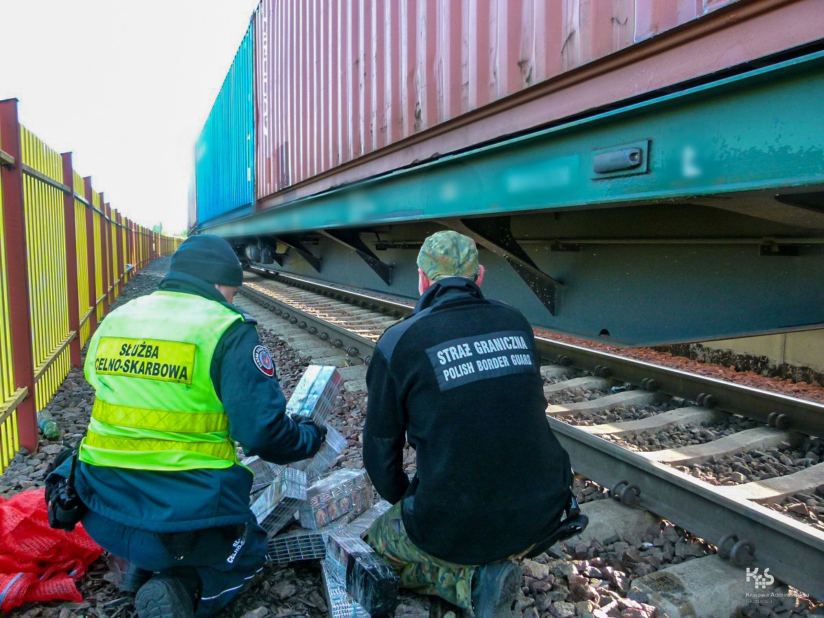 Z kolei w wyniku kontroli czterech innych składów towarowych funkcjonariusze zabezpieczyli blisko 2,8 tys. paczek. Papierosy ukryte były w ramach wagonów i platform.