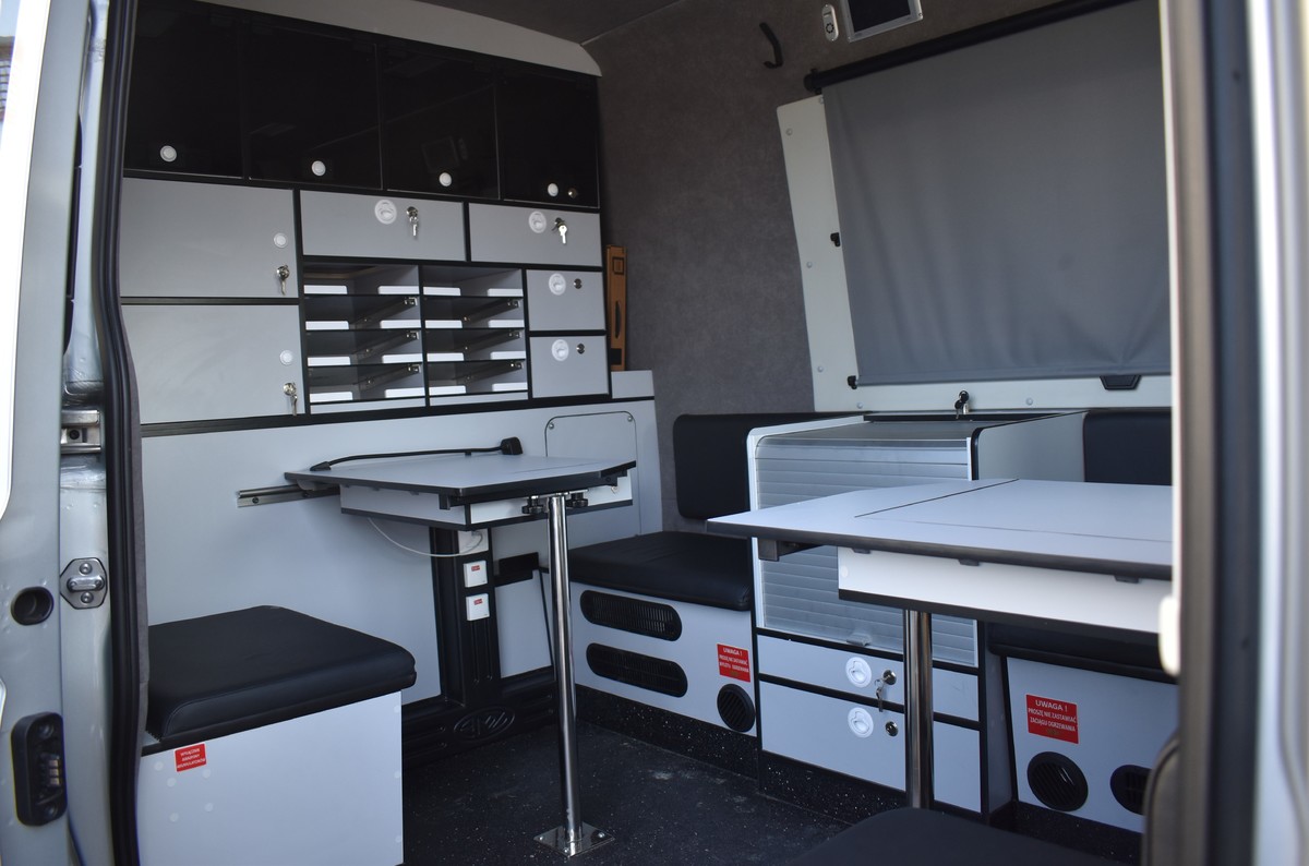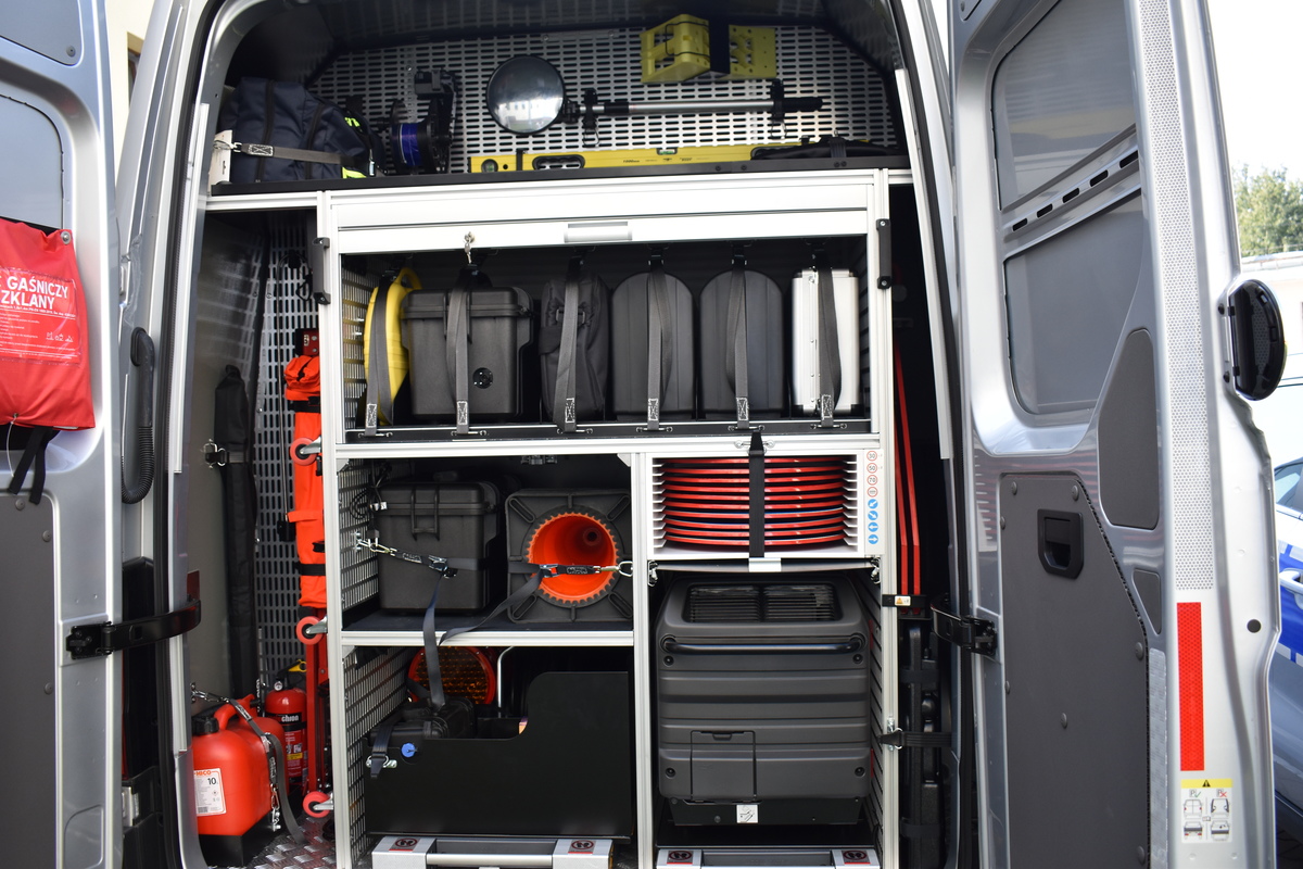 W samochodzie są sprzęty, dzięki którym możliwa jest dokładna kontrola np. lustro na wózku, specjalny kojec do obserwacji podwozia samochodu. Oprócz urządzeń ułatwiających przeprowadzanie kontroli stanu technicznego pojazdów, radiowóz posiada też wszystkie niezbędne przyrządy do kompleksowej obsługi i zabezpieczenia zdarzeń drogowych, a dodatkowo w przestrzeni pasażerskiej znajduje się „mini-biuro” z komputerem przenośnym i urządzeniem wielofunkcyjnym, umożliwiające sprawne sporządzanie dokumentacji. - Dzięki tej inwestycji garwolińscy policjanci mogą skuteczniej weryfikować, czy dany pojazd jest sprawny technicznie oraz czy spełnia wszystkie normy związane z ochroną środowiska – dodaje podkom. Pychner.