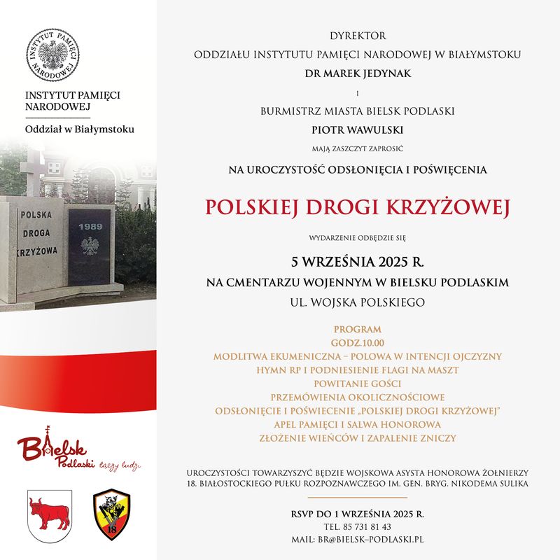 Uroczystość odsłonięcia i poświęcenia pomnika Polskiej Drogi Krzyżowej na cmentarzu wojennym w Bielsku Podlaskim odbędzie się w piątek, 5 września.