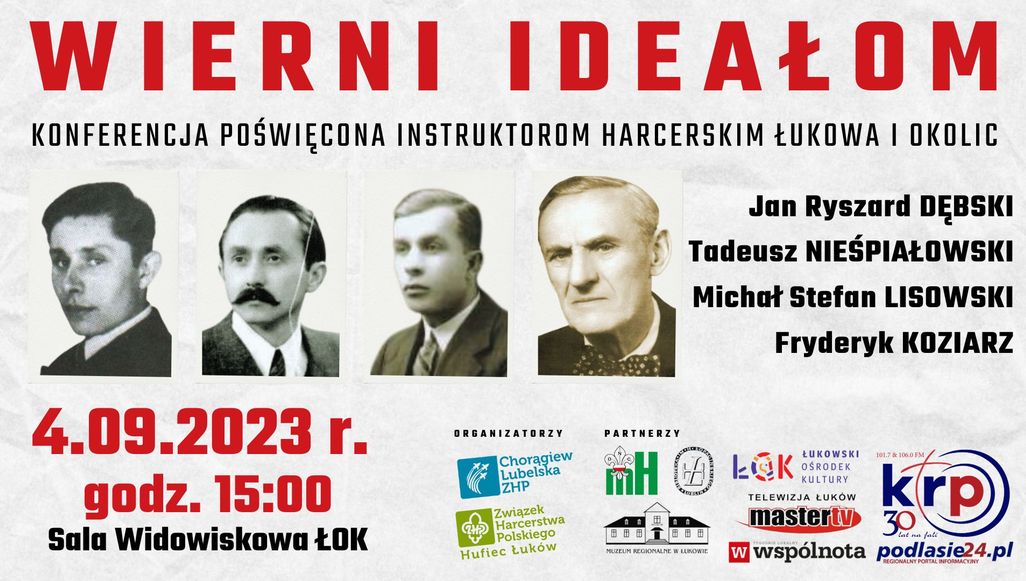 Dziś, 4 września o godzinie 15.00 w Łukowskim Ośrodku Kultury rozpocznie się konferencja pod hasłem „Wierni Ideałom”. Organizują ją Chorągiew Lubelska ZHP i Hufiec ZHP Łuków. Temu wydarzeniu patronuje Katolickie Radio Podlasie oraz portal Podlasie24.pl.