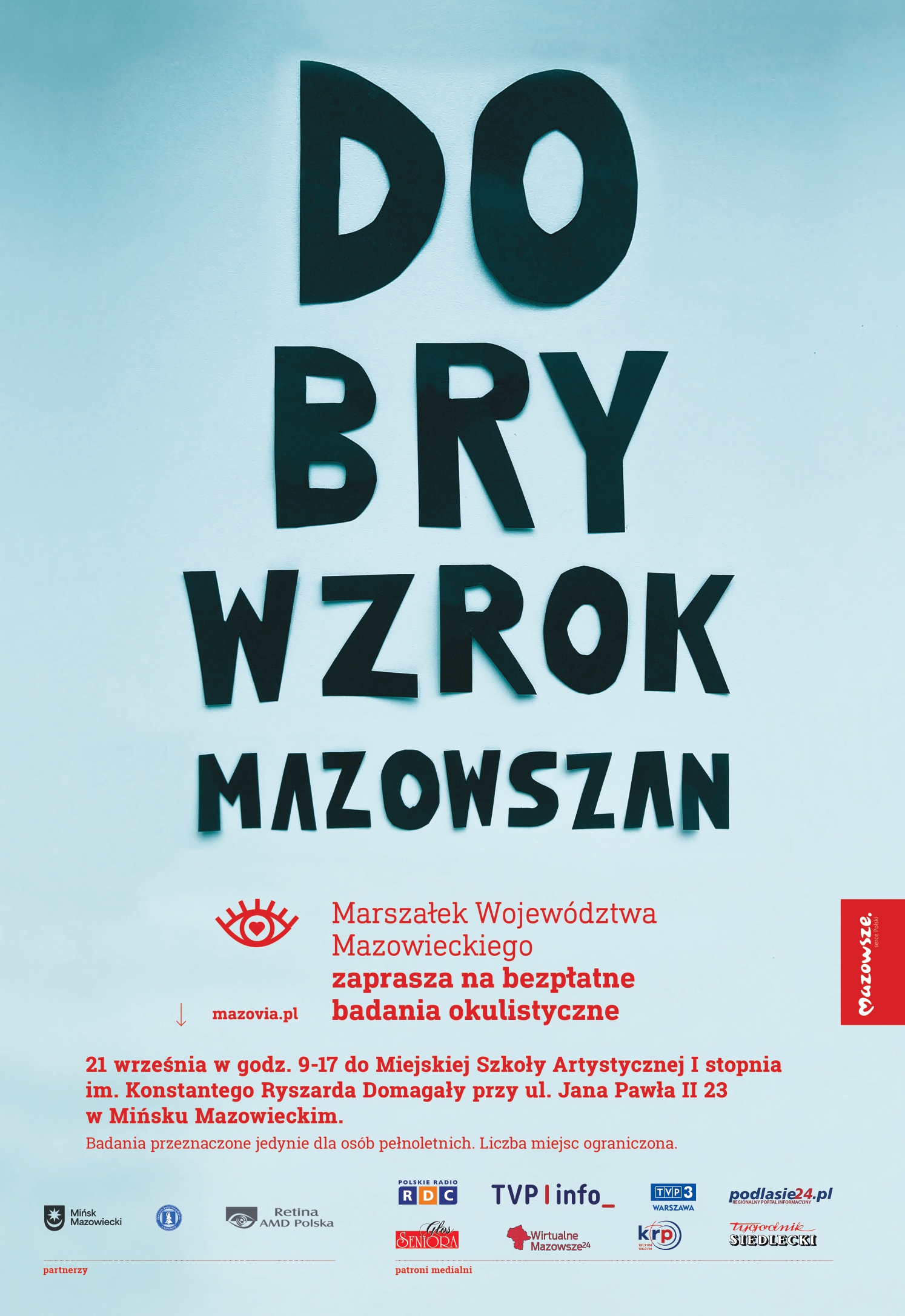 Bezpłatne przesiewowe badania wzroku zostaną przeprowadzone w Miejskiej Szkole Artystycznej I stopnia im. Konstantego Ryszarda Domagały w Mińsku Mazowieckim. Inicjatywa samorządu województwa mazowieckiego odbędzie się w niedzielę, 21 września. Udział w badaniach nie wymaga skierowania lekarskiego.