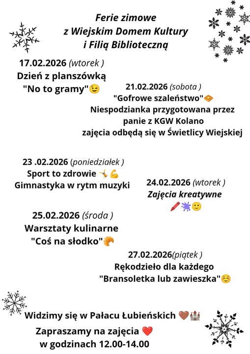 Drugi tydzień ferii zapowiada się równie intensywnie. Organizatorzy już teraz zapowiadają kolejne warsztaty, turnieje, zabawy tematyczne oraz niespodzianki dla najmłodszych. Wszystko po to, aby zimowy czas w powiecie parczewskim był pełen radości, twórczości i wspólnych przeżyć.
