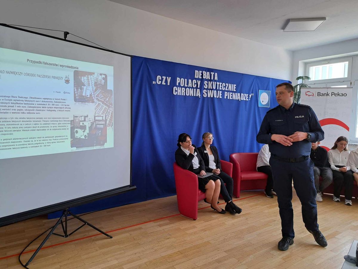 W czwartek, 7 marca w Publicznej Szkole Podstawowej nr 2 w Rykach przedstawiciel ryckiej komendy wziął udział w debacie oksfordzkiej na temat "Czy Polacy skutecznie chronią swoje pieniądze?” w ramach programu „Złote Klasy NBP”.