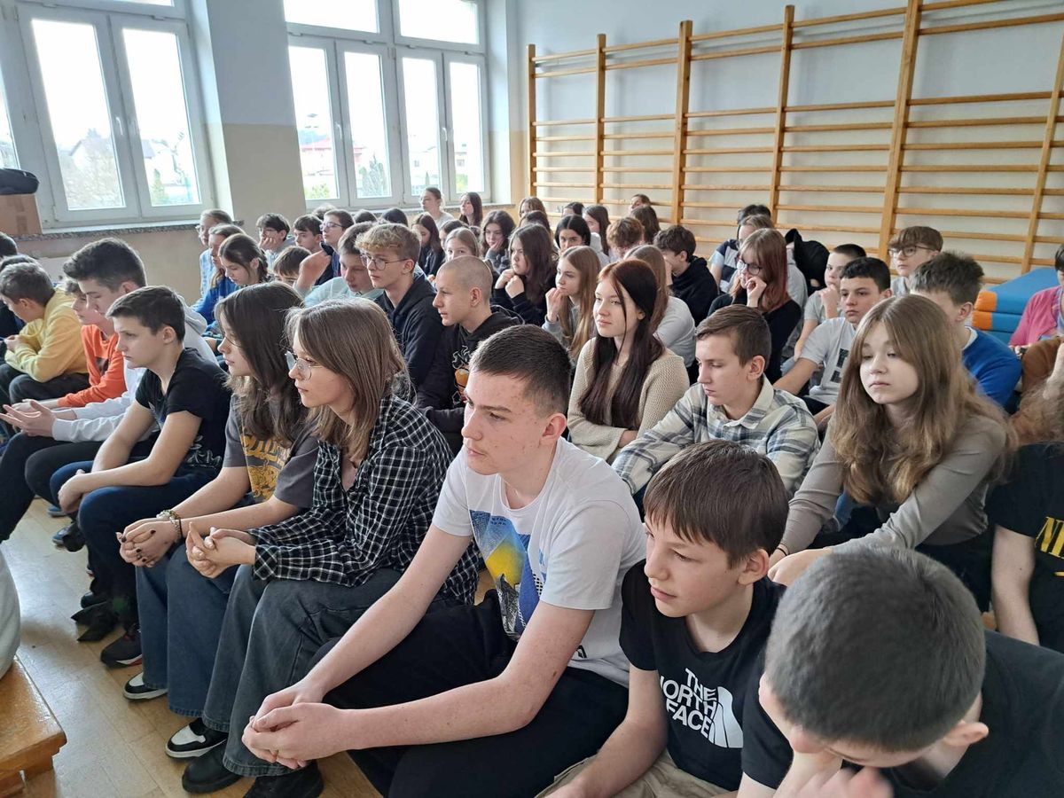 Przedstawiciel ryckiej komendy na debacie oksfordzkiej w Szkole Podstawowej Nr 2 w Rykach