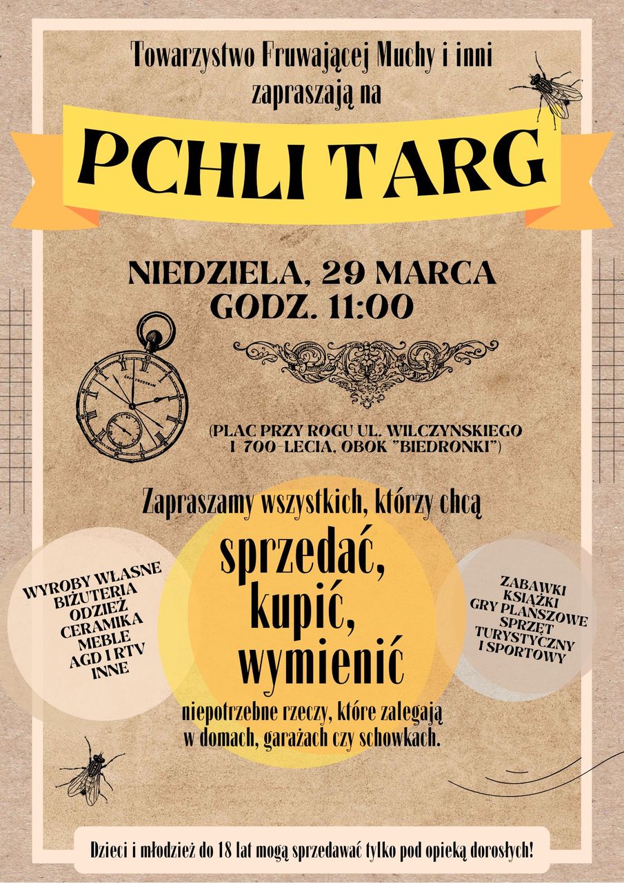 Kolejna edycja Pchlego Targu odbędzie się w niedzielę, 29 marca. Rozpocznie się o godzinie 11.00. Na targu będzie można sprzedawać, kupować lub wymieniać się przeróżnymi rzeczami. Organizatorzy przypominają, że dzieci i młodzież do 18. roku życia mogą handlować na Pchlim Targu wyłącznie pod opieką dorosłych.Pchli Targ organizuje Andrzej Zdrojewski we współpracy z Towarzystwem Fruwającej Muchy. Wsparcia udziela m.in. Łukowska Spółdzielnia Mieszkaniowa.