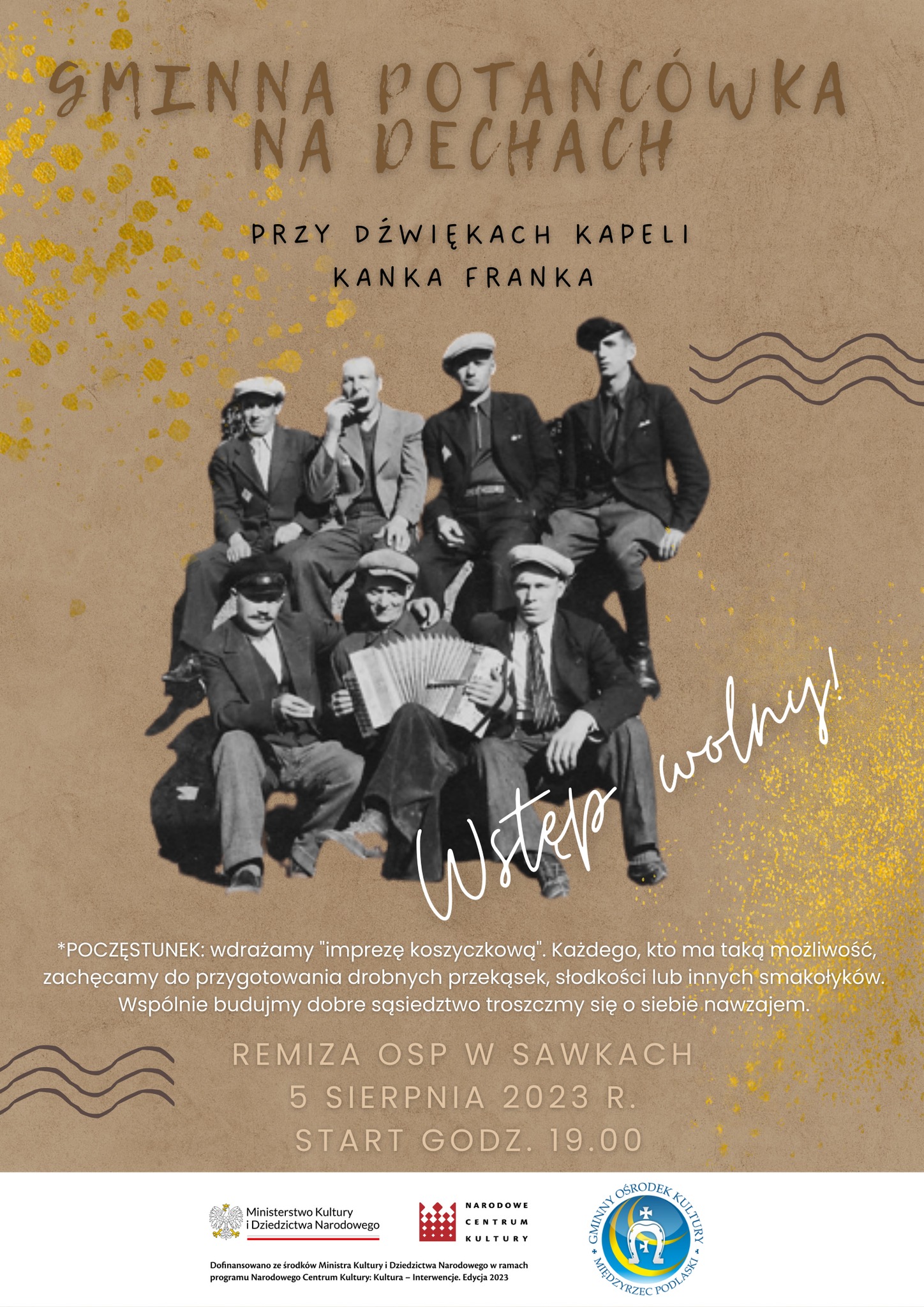 W sobotę, 5 sierpnia w Sawkach odbędzie się Gminna Potańcówka na Dechach. W remizie OSP wszyscy chętni już od godziny 19:00 będą mogli bawić się przy akompaniamencie kapeli Kanka Franka.