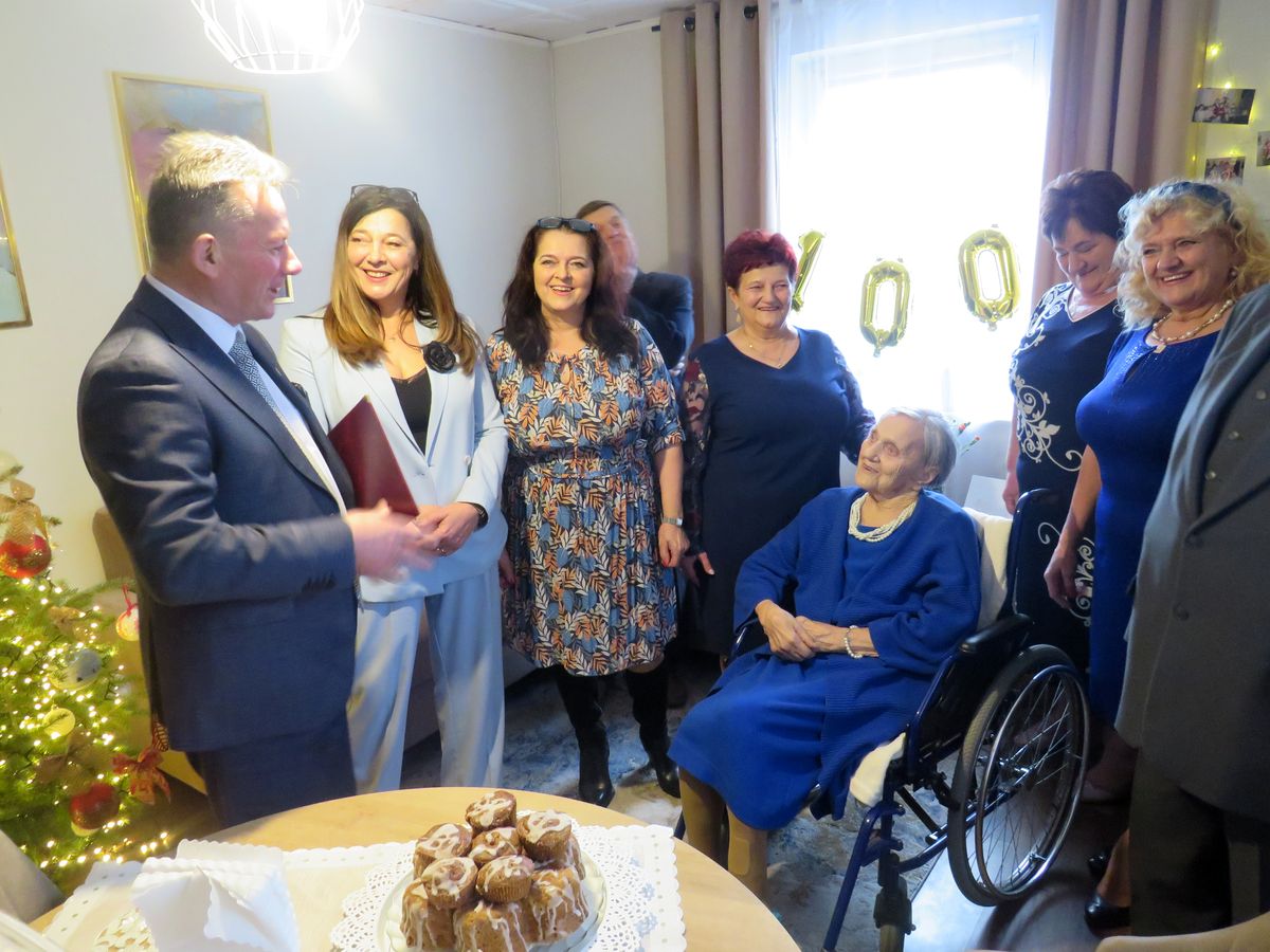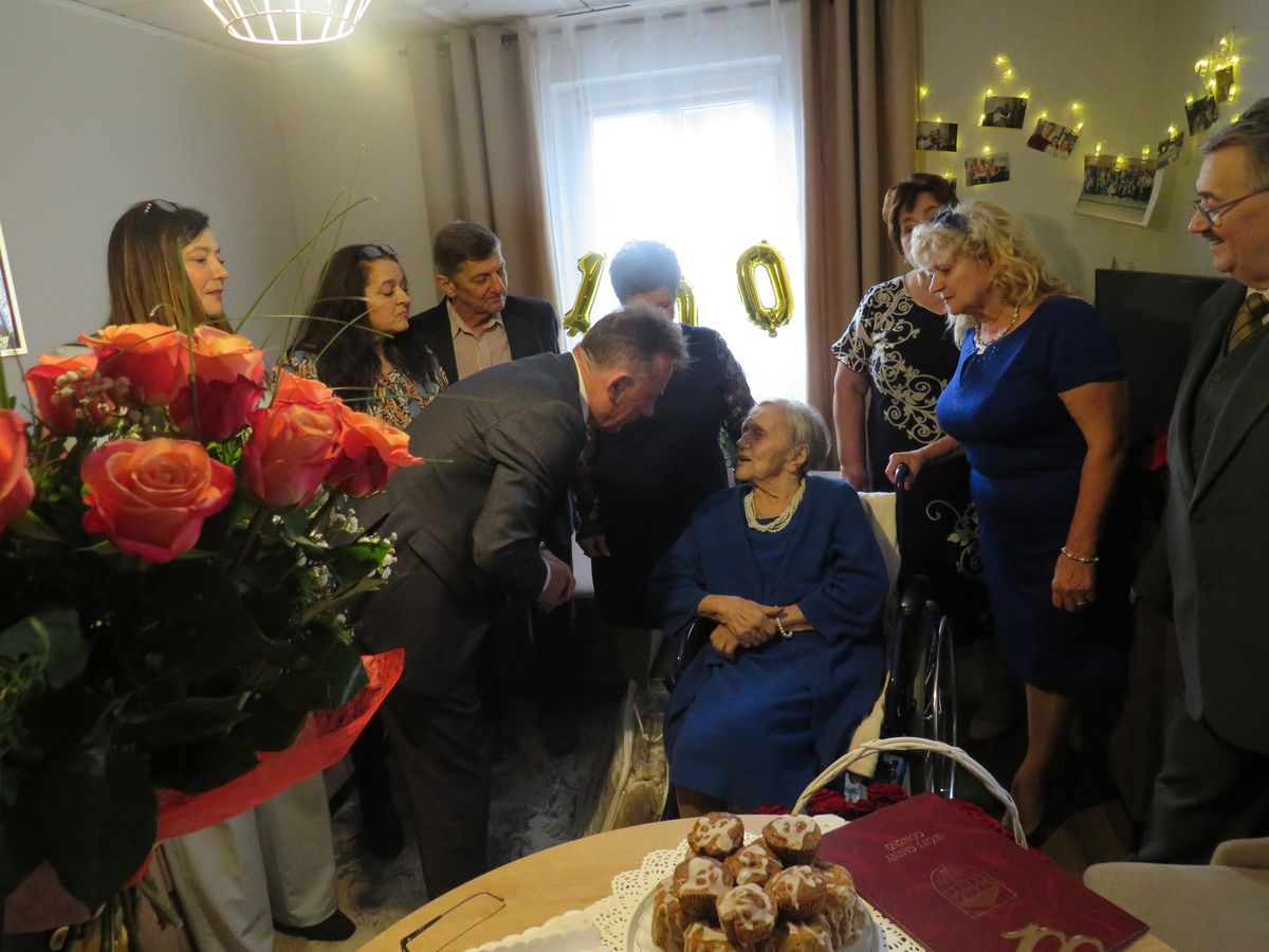 Stuletnią mieszkankę gminy i jej najbliższą rodzinę odwiedzili przedstawiciele samorządu gminy z wójtem Waldemarem Sabakiem i zastępczynią kierownika USC Marta Bielecką i przekazali na jej ręce bukiet kwiatów, list gratulacyjny i prezent. List gratulacyjny od prezes Kasy Rolniczego Ubezpieczenia Społecznego przekazał Jubilatce kierownik PT KRUS w Garwolinie Andrzej Koszutski i wręczył kwiaty oraz decyzję przyznającą dodatkowe świadczenie emerytalne.Wiktoria Rejnik urodziła się 15 grudnia 1923r. w miejscowości Podosie jako jedna z 4 córek.
