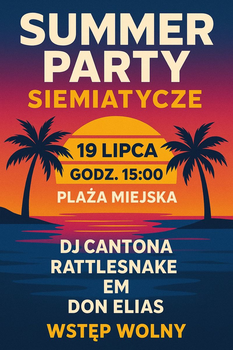 Tego samego dnia, w sobotę 19 lipca, o godz. 15.00 na plaży miejskiej przy ul. Sportowej odbędzie się Summer Party.