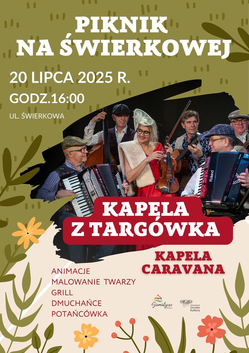 W niedzielę, 20 lipca, podczas „Pikniku na Świerkowej” wystąpią Kapela z Targówka i Kapela Caravana. Początek o godz. 16.00. W programie również potańcówka pod chmurką.
