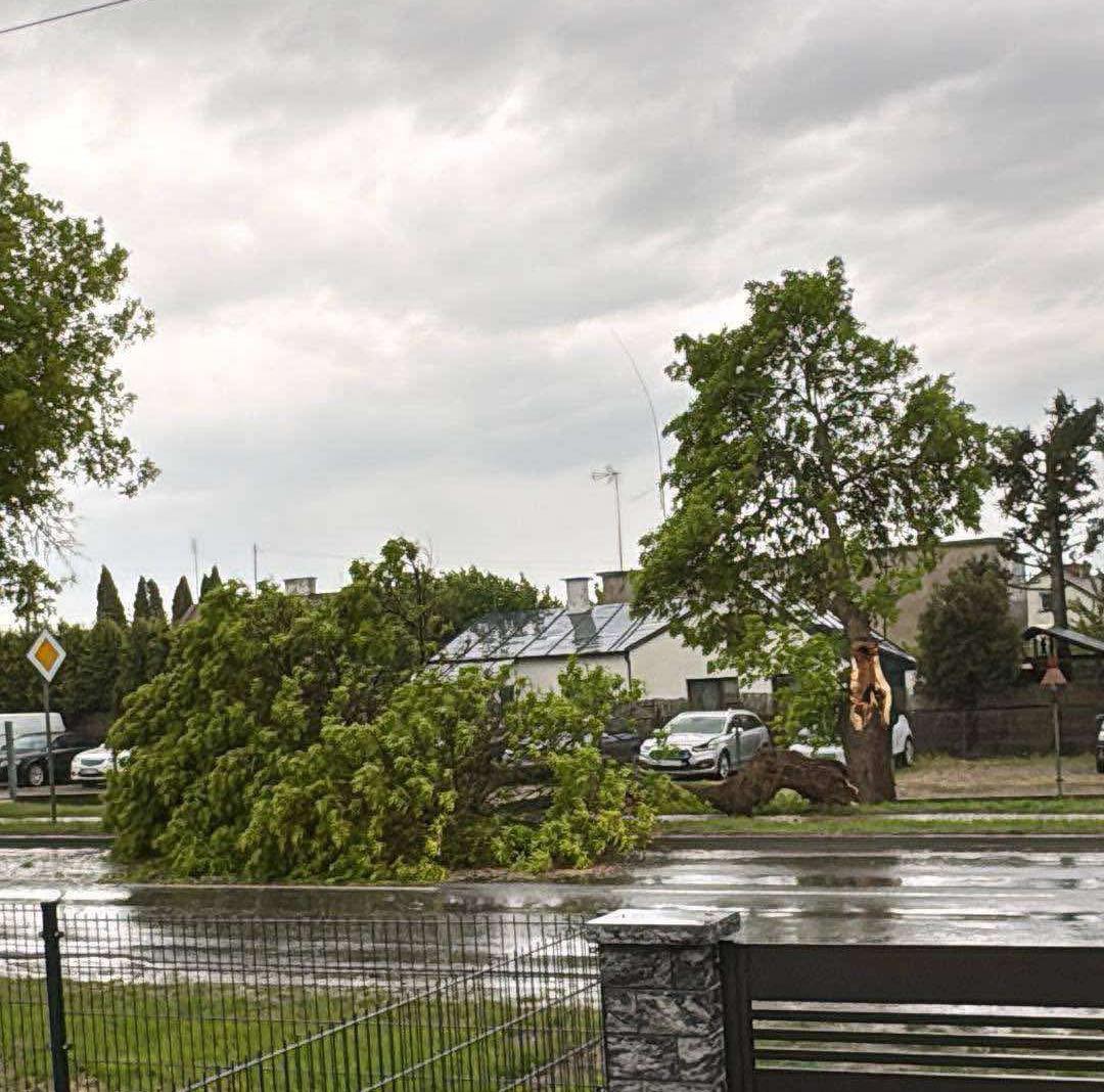 Front burzowy przemieszcza się nad naszym regionem. W godzinach popołudniowych silny wiatr spowodował szkody w miejscowościach powiatu sokołowskiego. Powalone drzewa, złamane gałęzie blokujące drogi i zerwany dach – to obraz po nawałnicy w tym regionie.